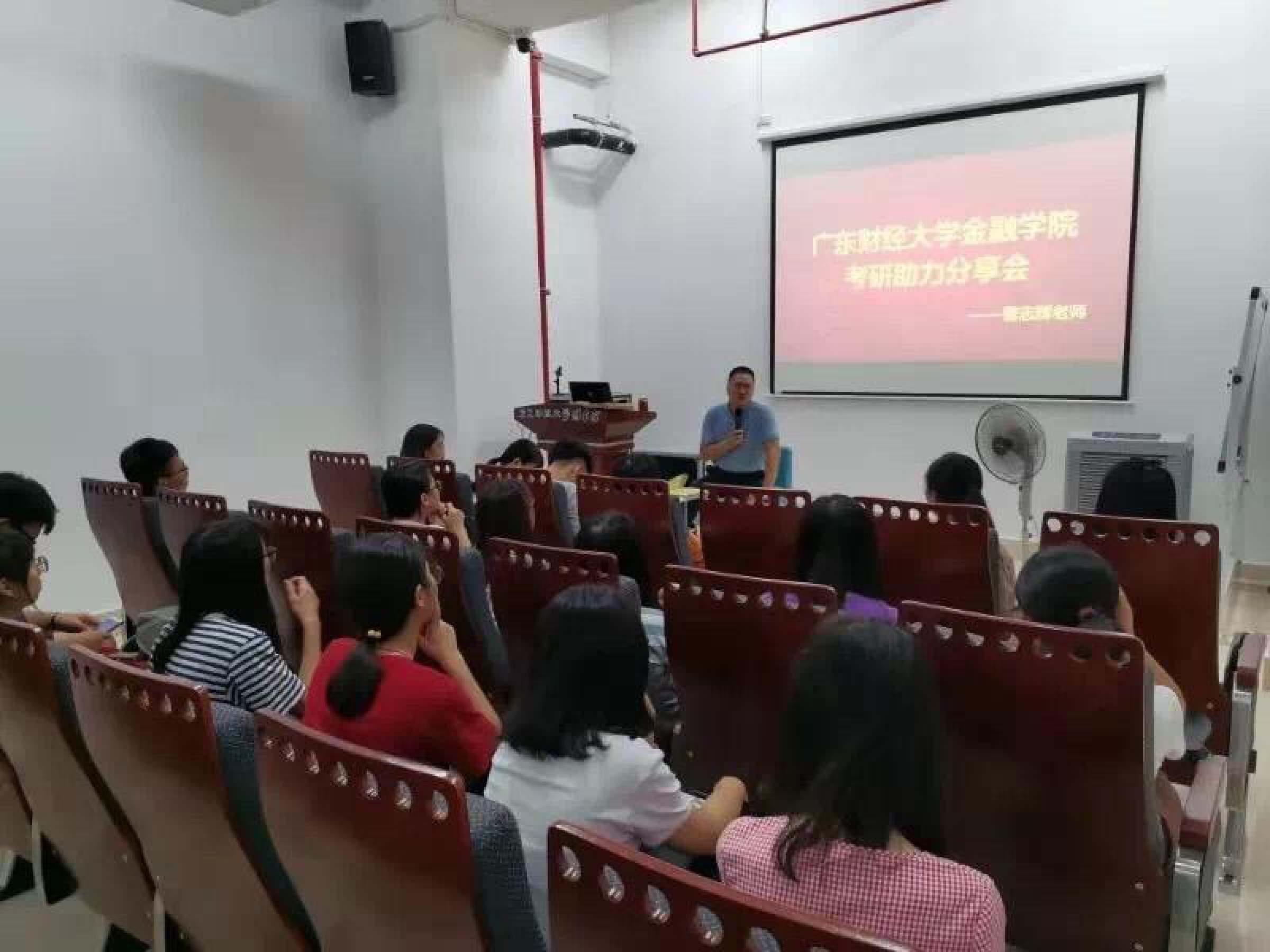 2019年6月,广东财经大学金融学院首届公益考研班正式成立,班级地址设置在学校图书馆8楼欧亚文化馆,共招收2020届毕业年级同学69名。