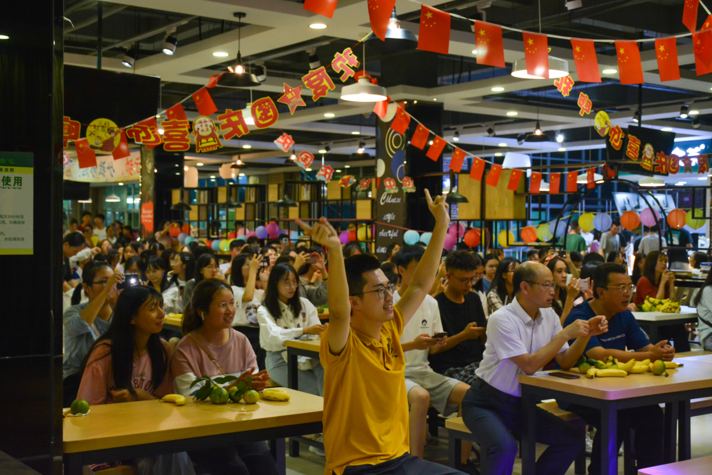 10月1日晚上,校区学工办、团工委、饮食服务中心共同承办了“迎中秋联欢活动”。管委会校领导与留校学生齐聚一堂,猜灯谜,表演节目,观看央视中秋晚会。校区信息学院蔡键青老师带来的歌曲赢得了在场师生们的阵阵掌声,街舞串烧等表演使得现场气氛火热。全体人员还一起合唱《我和我的祖国》,共同祝福祖国生日。