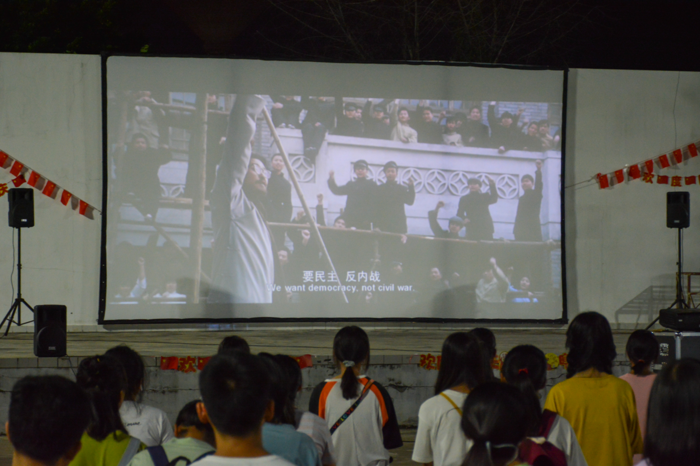 10月3日晚,全体留校学生、教职员工及家属欢聚篮球场观看露天电影——《建国大业》。《建国大业》讲述了从抗日战争结束到1949年中华人民共和国建立前期发生的一系列故事。经济学院杨键禧观观看电影后表示:“这是我第二次观看这部影片了,每次观看这部影片时,我都能通过银幕真切地体会到当时人民的呼声和共产党团结人民的决心,也能够看到新中国的诞生是由无数的革命人士用自己的生命和鲜血换来的,让我更加珍惜现在的和平岁月。”
