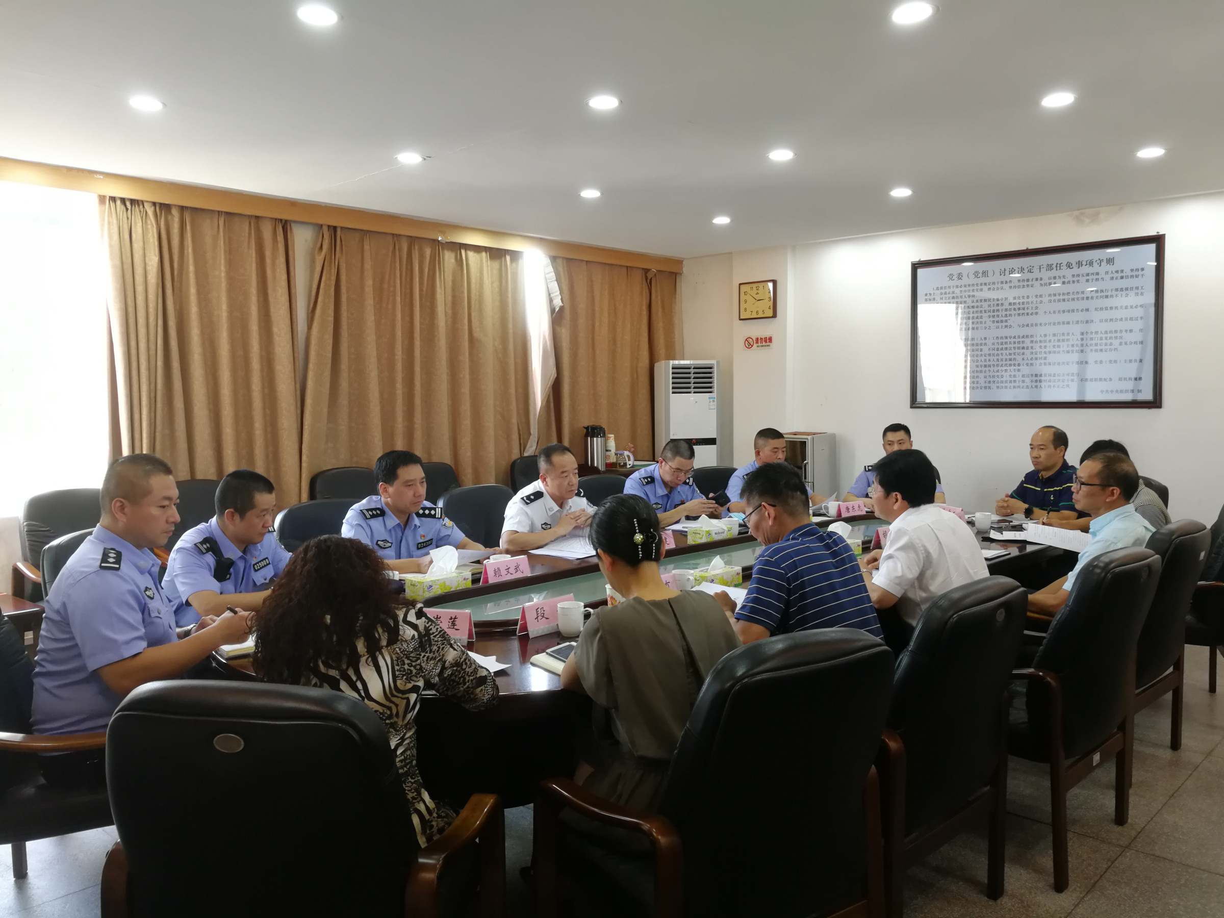 为进一步强化疫情防控常态化下的学校安全工作,10月12日下午,学校在行政楼第二会议室召开警校联动座谈会,校党委副书记罗贤甲、海珠公安分局局长助理何新建,学校保卫处、学工部、研究生院与海珠公安分局、分局治安大队、官洲派出所负责人参加座谈。座谈会由保卫处处长蔡楷有主持。