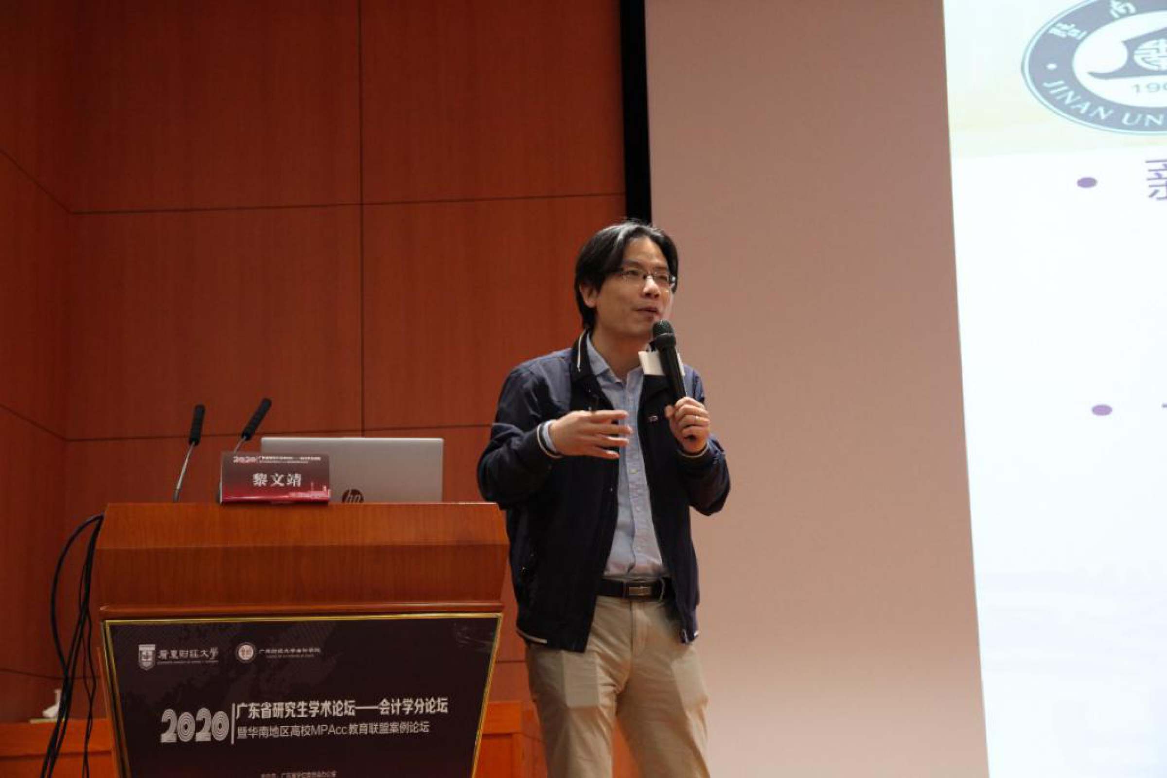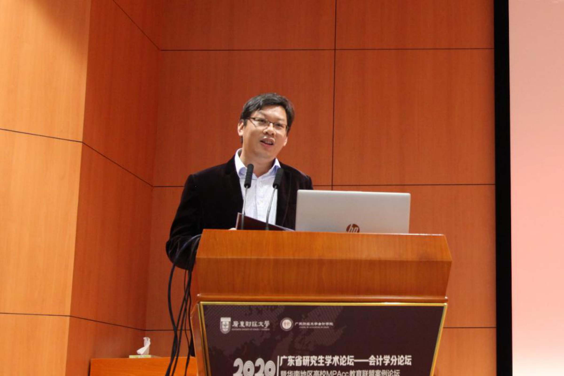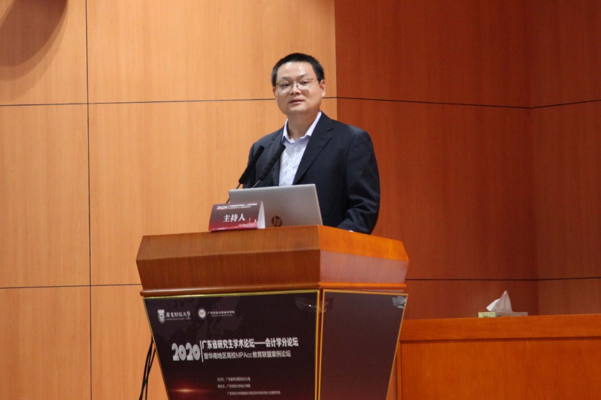 10月24日,2020广东省研究生学术论坛——会计学分论坛暨华南地区高校MPAcc教育联盟案例论坛在我校正心堂学术报告厅举行,中国教育在线同步网络直播。北京国家会计学院张庆龙教授,中山大学、华南理工大学、暨南大学、华南师范大学、广东外语外贸大学、华南农业大学、广东工业大学、广州大学、广东技术师范大学等高校的专家学者,以及我校研究生院与会计学院的领导和师生出席现场论坛,全国会计专业学位研究生教指委副主任委员、秘书长、中国人民大学王化成教授以及广东省审计厅林红巡视员在线上出席论坛。