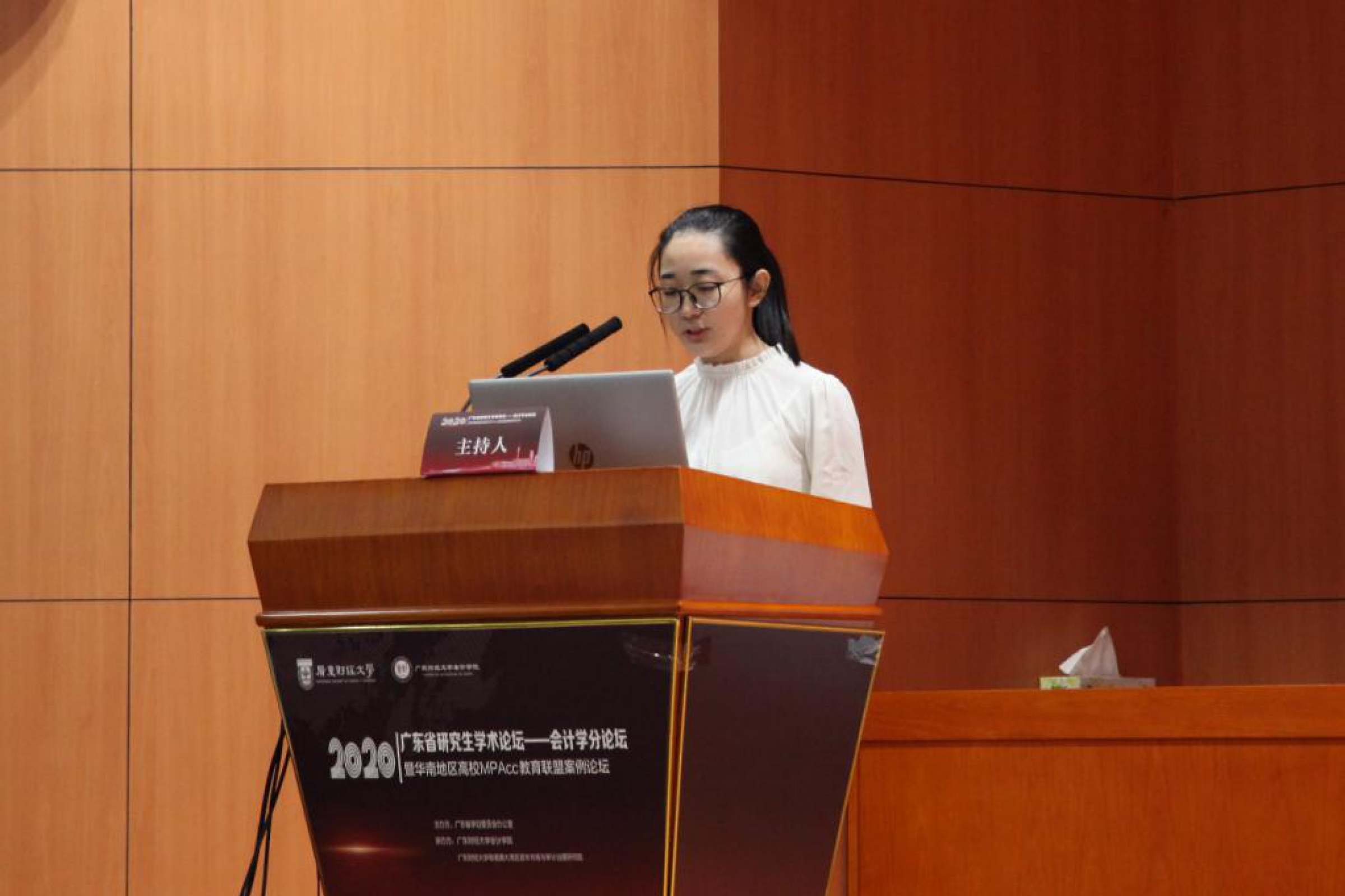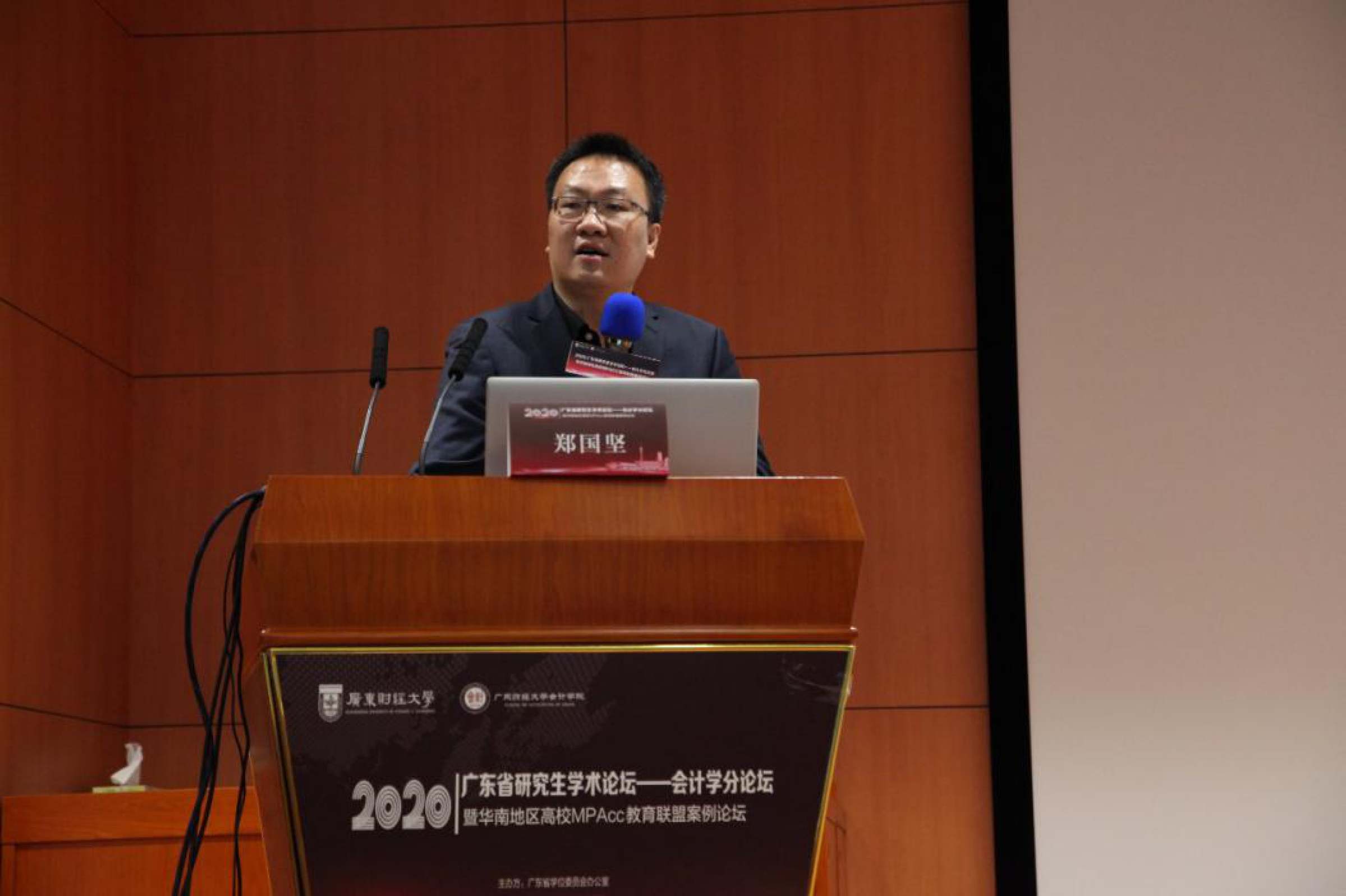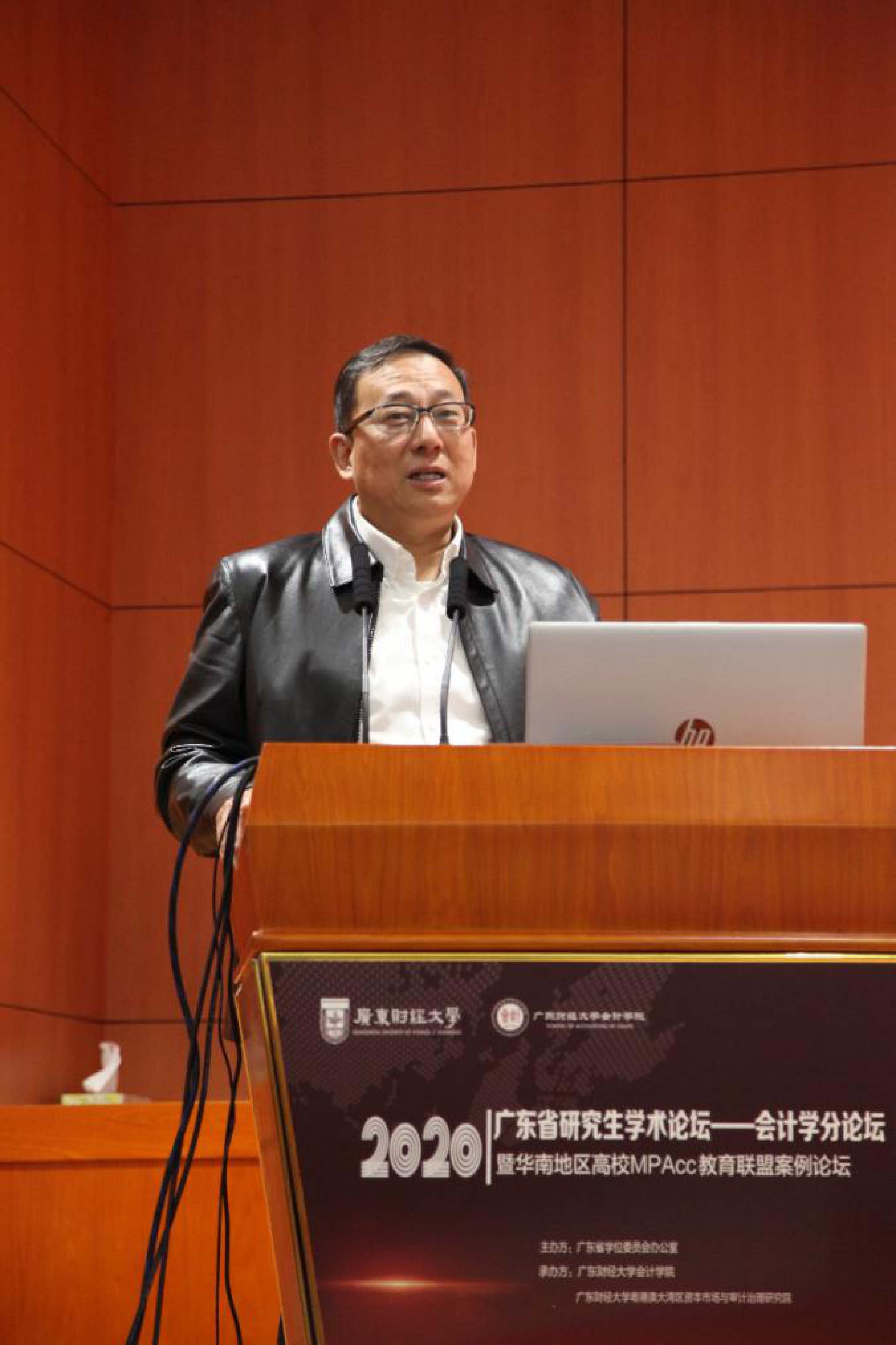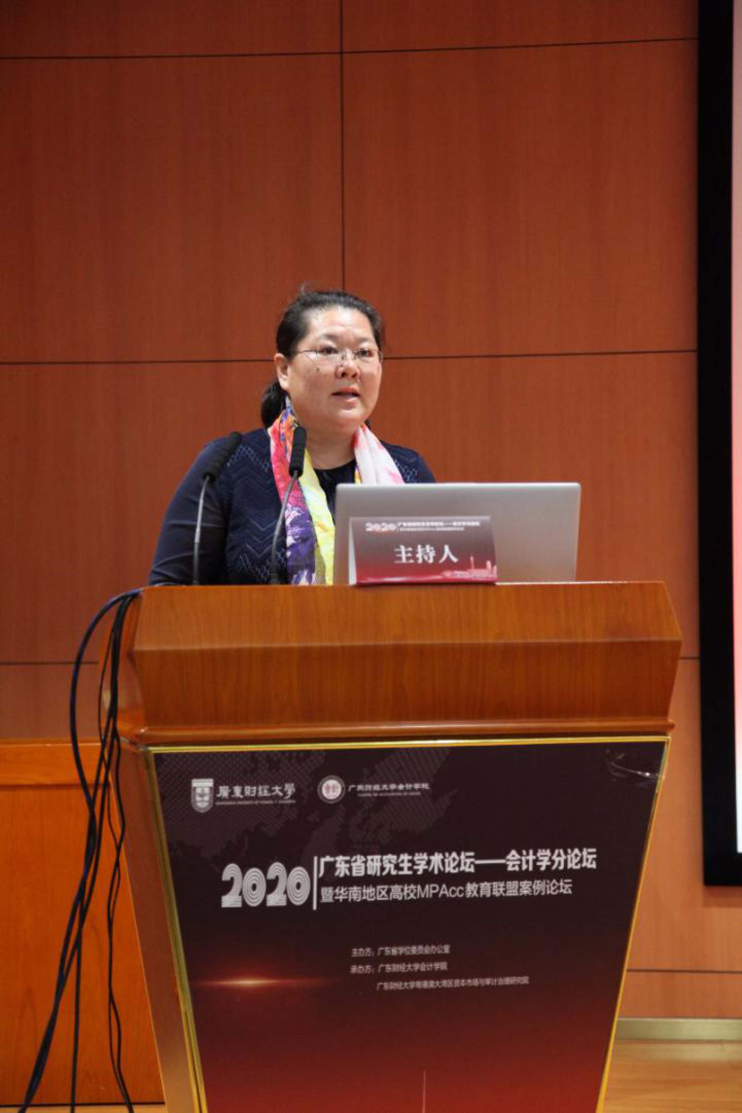 10月24日,2020广东省研究生学术论坛——会计学分论坛暨华南地区高校MPAcc教育联盟案例论坛在我校正心堂学术报告厅举行,中国教育在线同步网络直播。北京国家会计学院张庆龙教授,中山大学、华南理工大学、暨南大学、华南师范大学、广东外语外贸大学、华南农业大学、广东工业大学、广州大学、广东技术师范大学等高校的专家学者,以及我校研究生院与会计学院的领导和师生出席现场论坛,全国会计专业学位研究生教指委副主任委员、秘书长、中国人民大学王化成教授以及广东省审计厅林红巡视员在线上出席论坛。