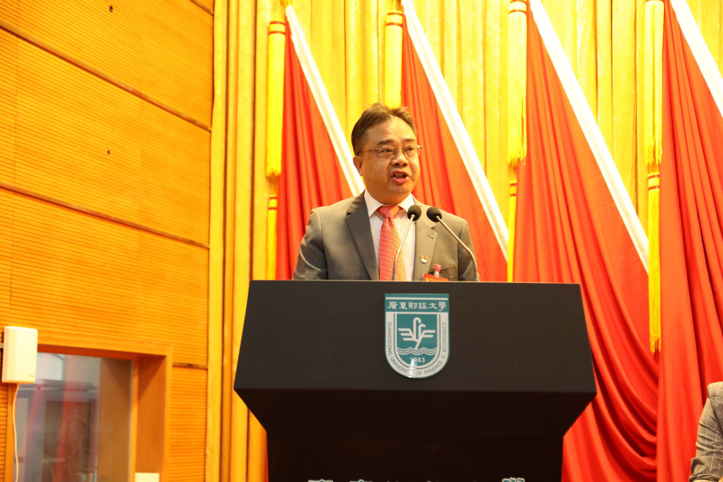 11月2日下午,中国共产党广东财经大学第一次代表大会在广州校区综合楼408室隆重开幕。这是我校2013年更名为广东财经大学后召开的第一次党代会,也是学校在抢抓机遇,升级提质关键时期召开的一次十分重要的大会。大会的主题是:高举习近平新时代中国特色社会主义思想伟大旗帜,全面贯彻党的十九大精神,深入贯彻全国教育大会精神,坚持党的全面领导,坚持全面从严治党,坚持新发展理念,坚持以深化改革激发创新发展活力,坚持提升内涵发展质量和水平,奋力建设大湾区一流财经大学。校长于海峰主持开幕式。