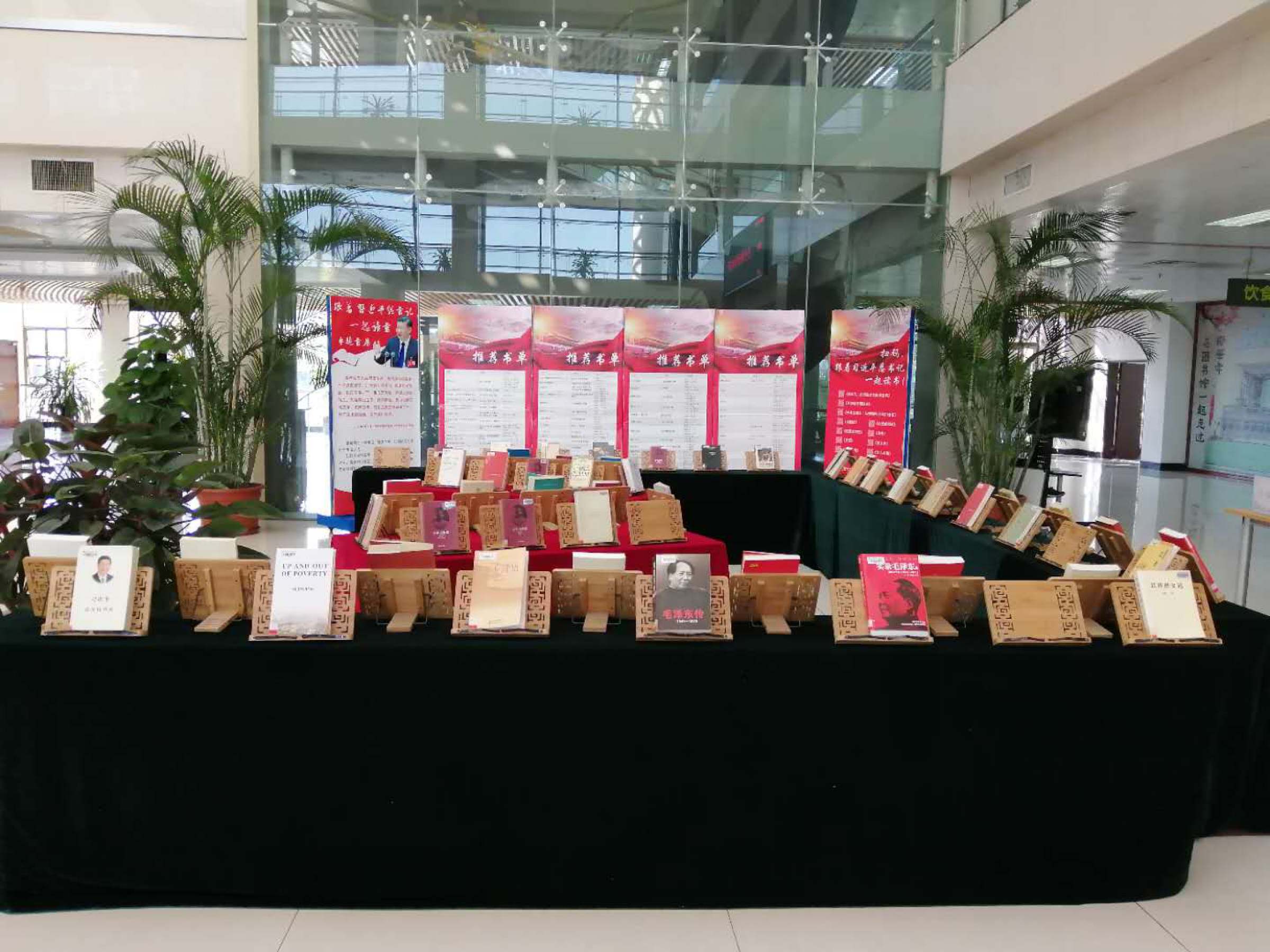 为深入学习贯彻落实习近平新时代中国特色社会主义思想,持续推进“书香广财”建设,图书馆利用馆藏资源,整理了习近平总书记的著作和推荐图书,于11月在两个校区馆的二楼大厅举办“跟着习近平总书记一起读书”专题书展。此次书展展出130多种图书,涉及政治与思想类、历史类、哲学类、经济类、文学类五个大类。此次书展的纸本图书可直接借阅,另外还提供了在线阅读方式。读者可以在书展海报或图书馆微信公众号的书展推送上扫码阅读。