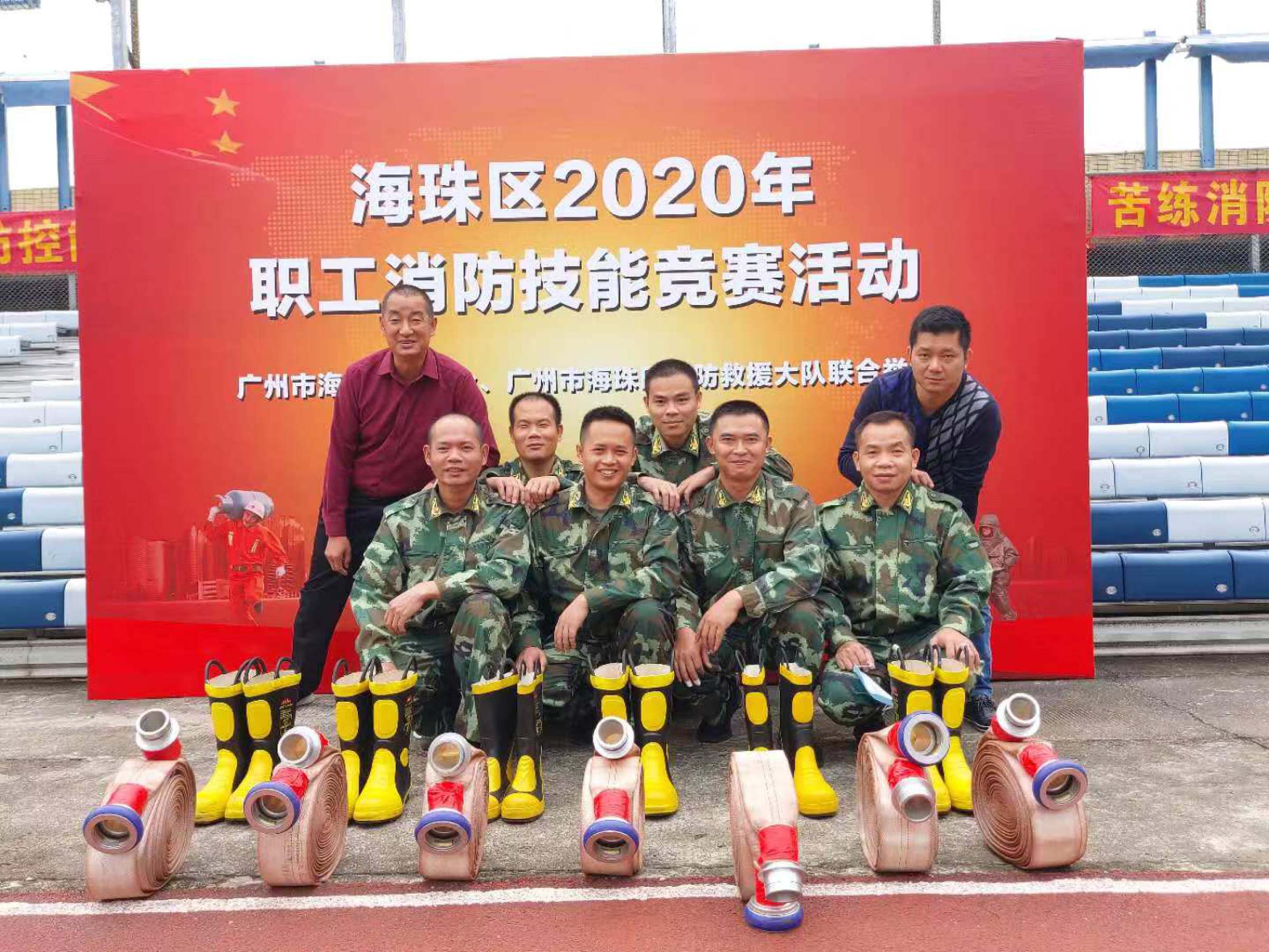 10月30日,2020年海珠区职工消防技能竞赛在燕子岗体育场开赛。本次竞赛由广州市海珠区总工会、海珠区消防救援大队联合举办,旨在进一步落实“预防为主,防消结合”的消防工作方针,提高消防重点单位灭火战斗力。10支消防救援站队、18个重点单位代表队和29个社区微型消防站代表队参加12个项目角逐。我校校卫队滕卫记、符标良、符标庄、黄健、雷正才、周建忠六位队员组队参赛,经过努力拼搏,荣获先进重点单位代表队三等奖、5盘水带连接操二等奖。