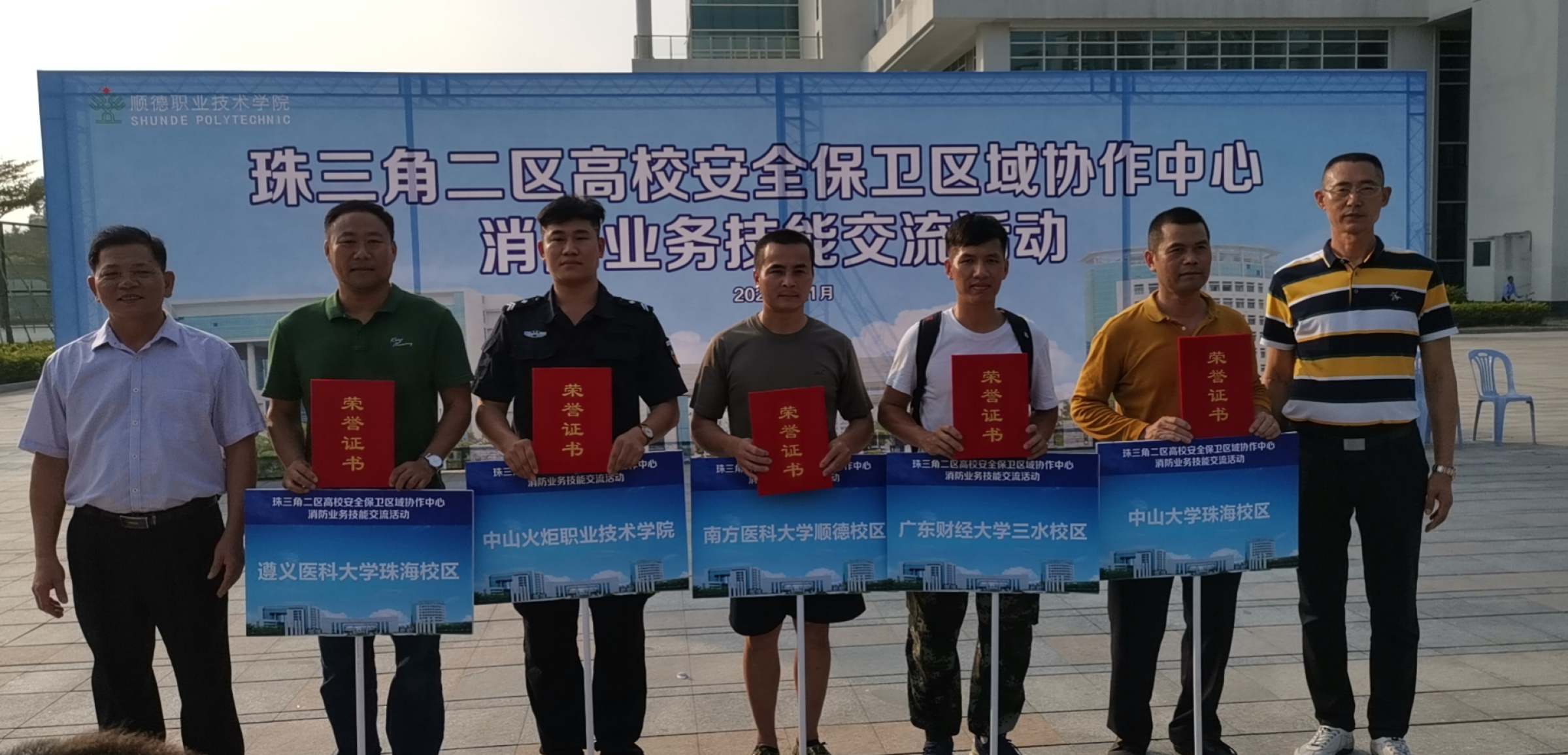 11月20日,2020年珠三角二区高校消防业务技能交流活动在顺德职业技术学院举行,我校佛山校区校卫队员唐军、任永辉、宋子榕参赛。比赛中,参赛队员相互配合、沉着应对,获得大赛二等奖。