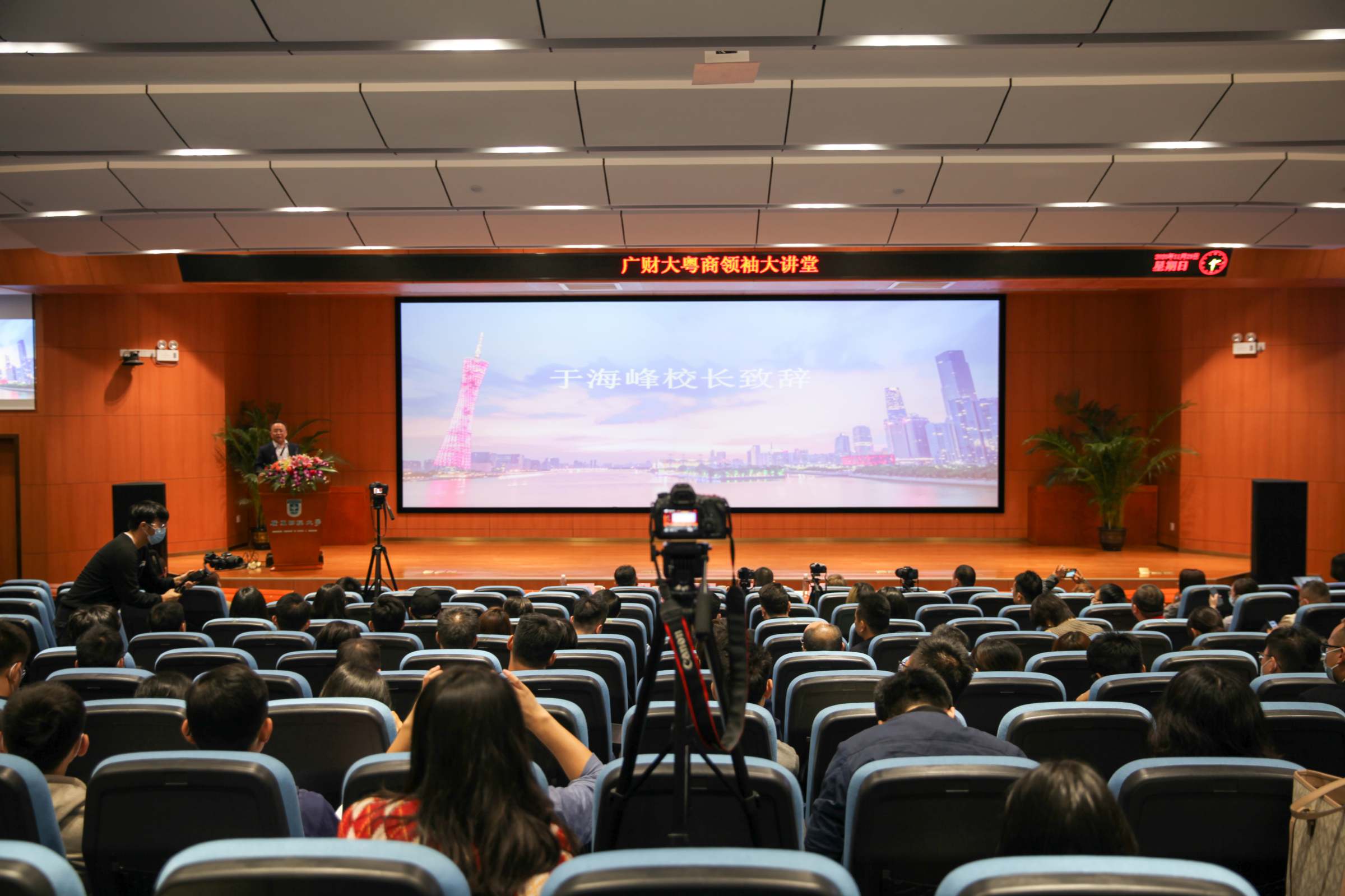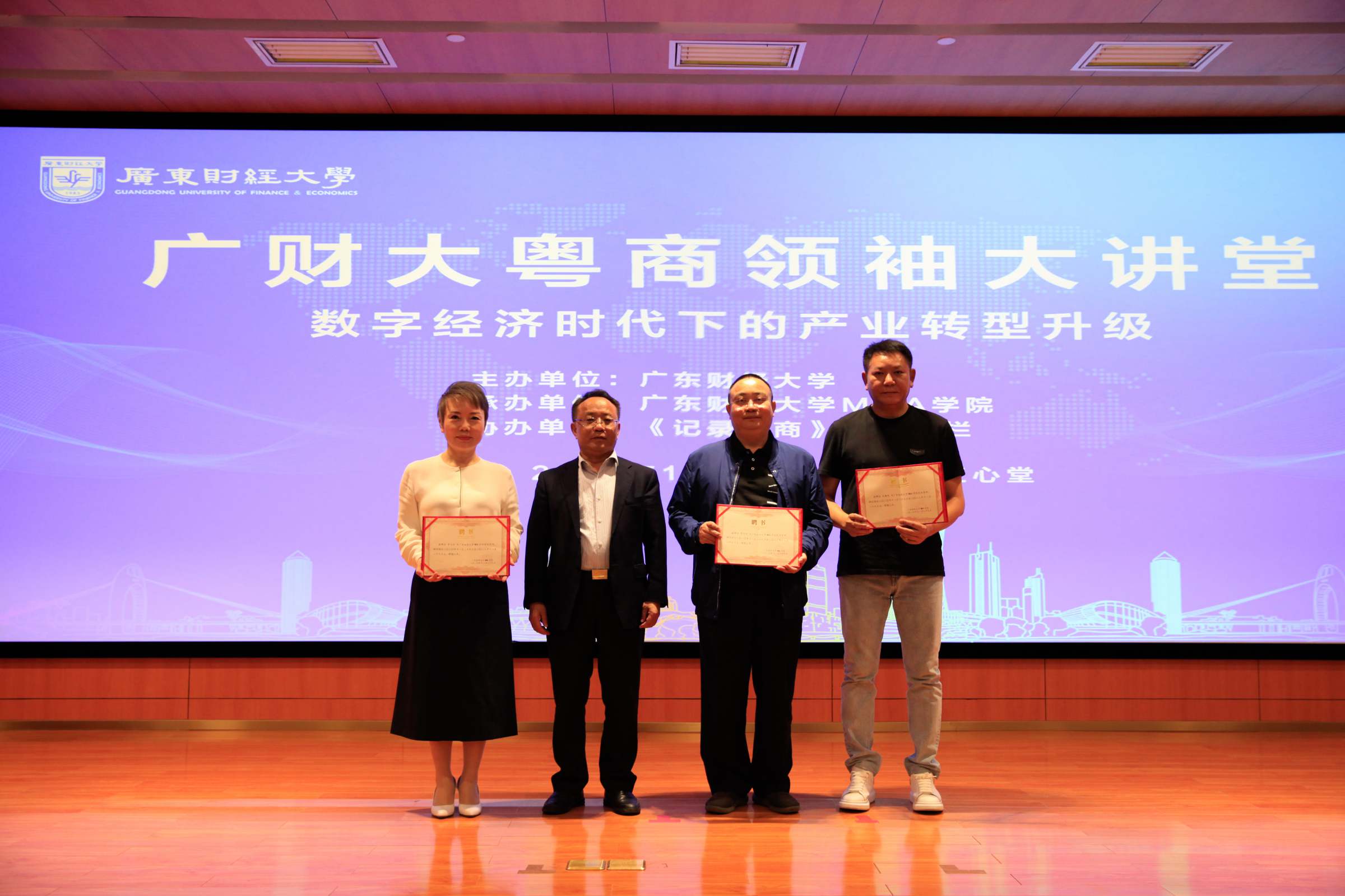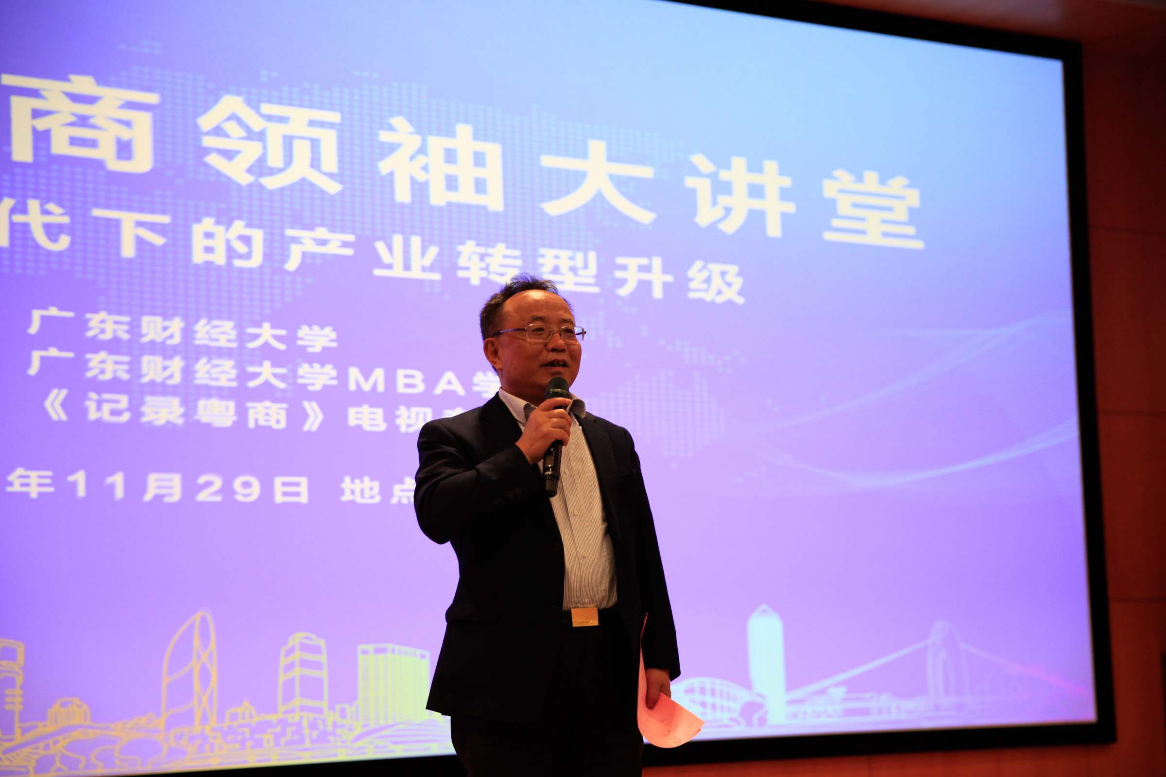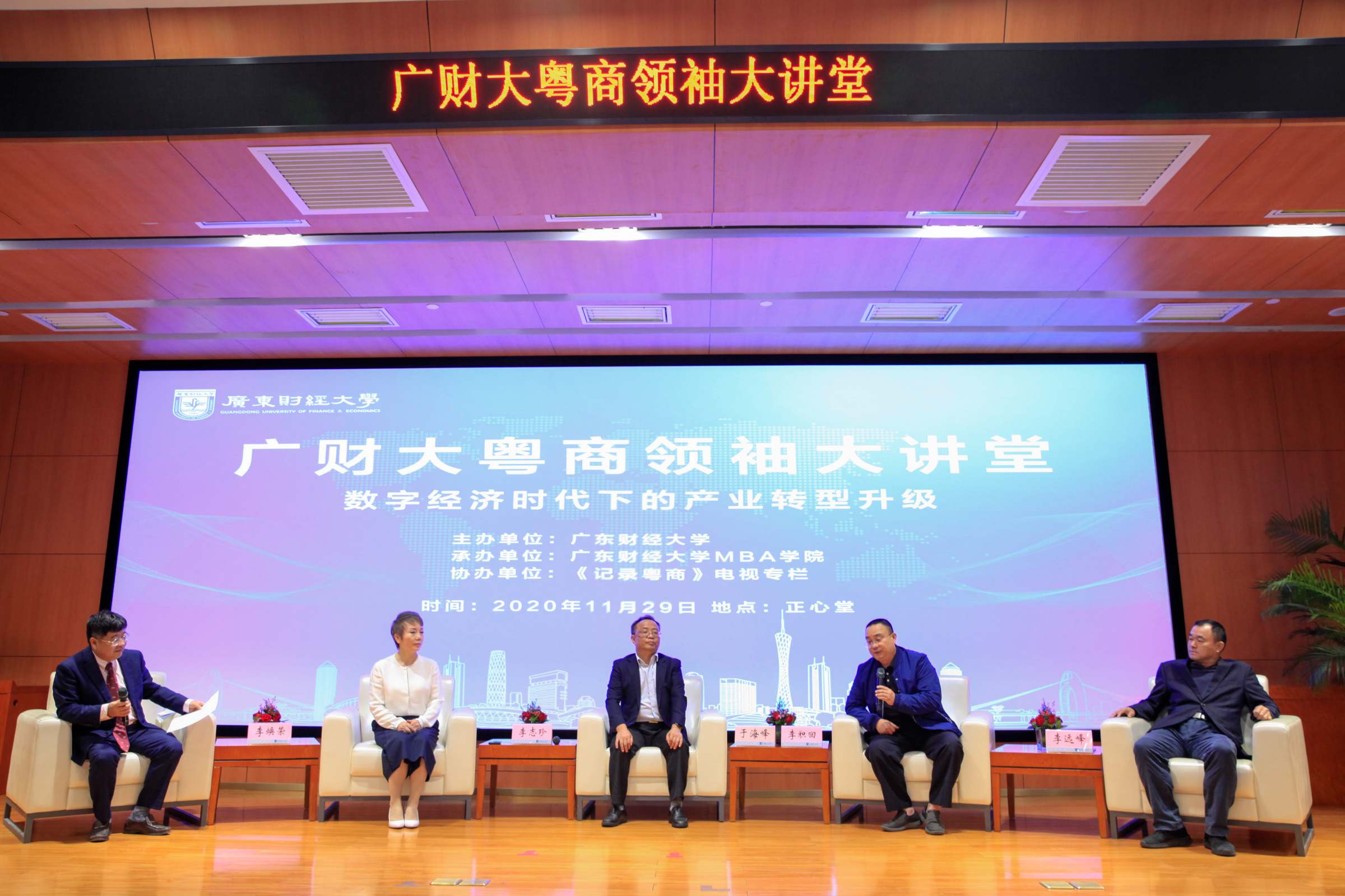 11月29日,以“数字经济时代下的产业转型升级”为主题的广财大粤商领袖大讲堂在我校正心堂举行。校长于海峰宣布大讲堂正式启动。MBA学院院长李焕荣主持大讲堂。