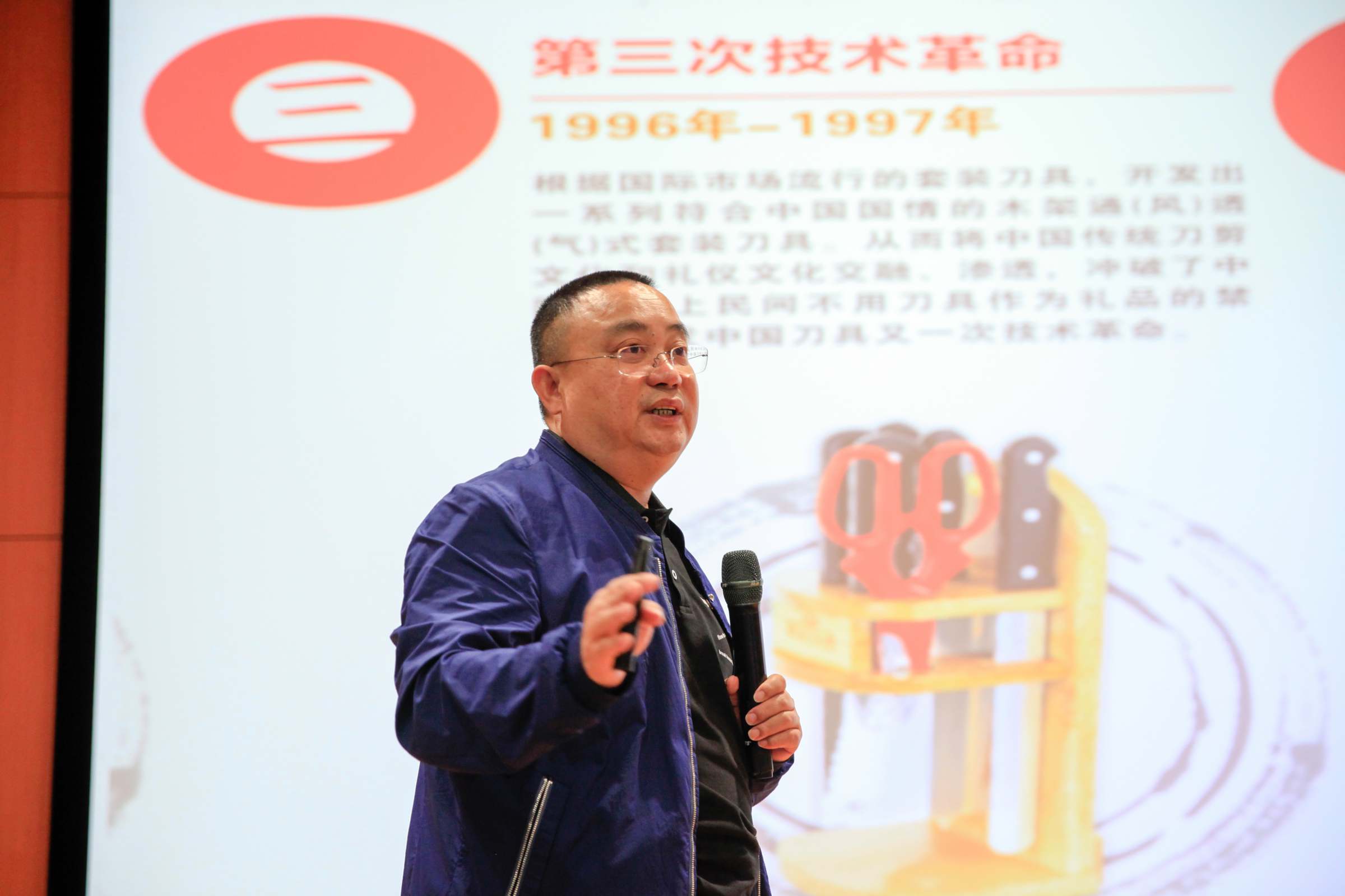 阳江十八子集团有限公司总裁李积回以《十八子 中国刀——十八子品牌之路》为主题讲述了公司发展的4次飞跃发展、5次革命之路,以及从国内走向国外的故事。他说,作为传统的刀具制造商家,十八子企业以“先做好人,再做好刀“为核心价值观,并把音乐文化、刀文化与人文结合在一起,着力营造了一种家的氛围。