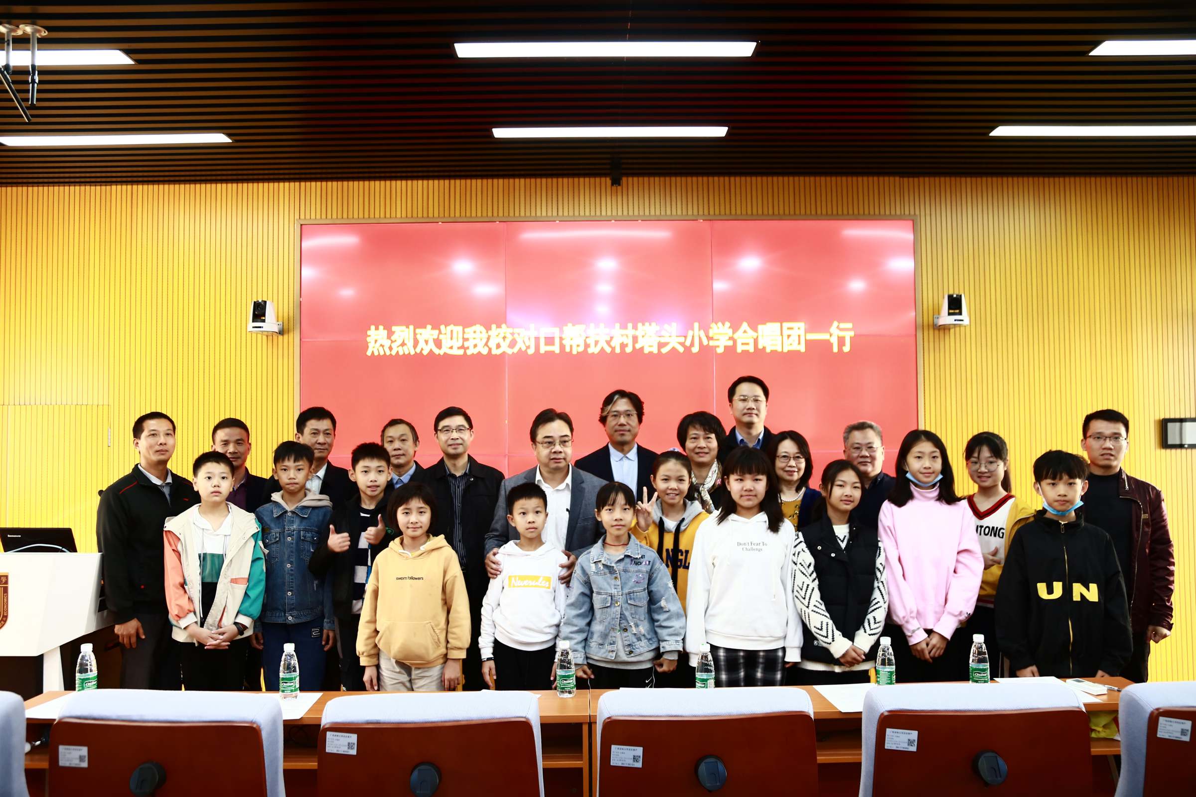 11月28日—12月1日,应中国国际儿童电影展组委会和学校的邀请,我校对口帮扶村塔头小学合唱团一行18人在揭西县、塔头镇相关领导的带领下到访学校。校党委书记郑贤操、党委副书记罗贤甲,组织部部长郑金栈、副部长杨长春,校团委书记龚义荣、副书记钟雄星,学生就业指导中心副主任陈静,艺术学院党委书记彭翠峰、院长杜肇铭,国家经管中心主任车嘉丽、副主任刘强,我校派驻揭西塔头村扶贫工作队全体成员分别在不同时间参与会见和活动。