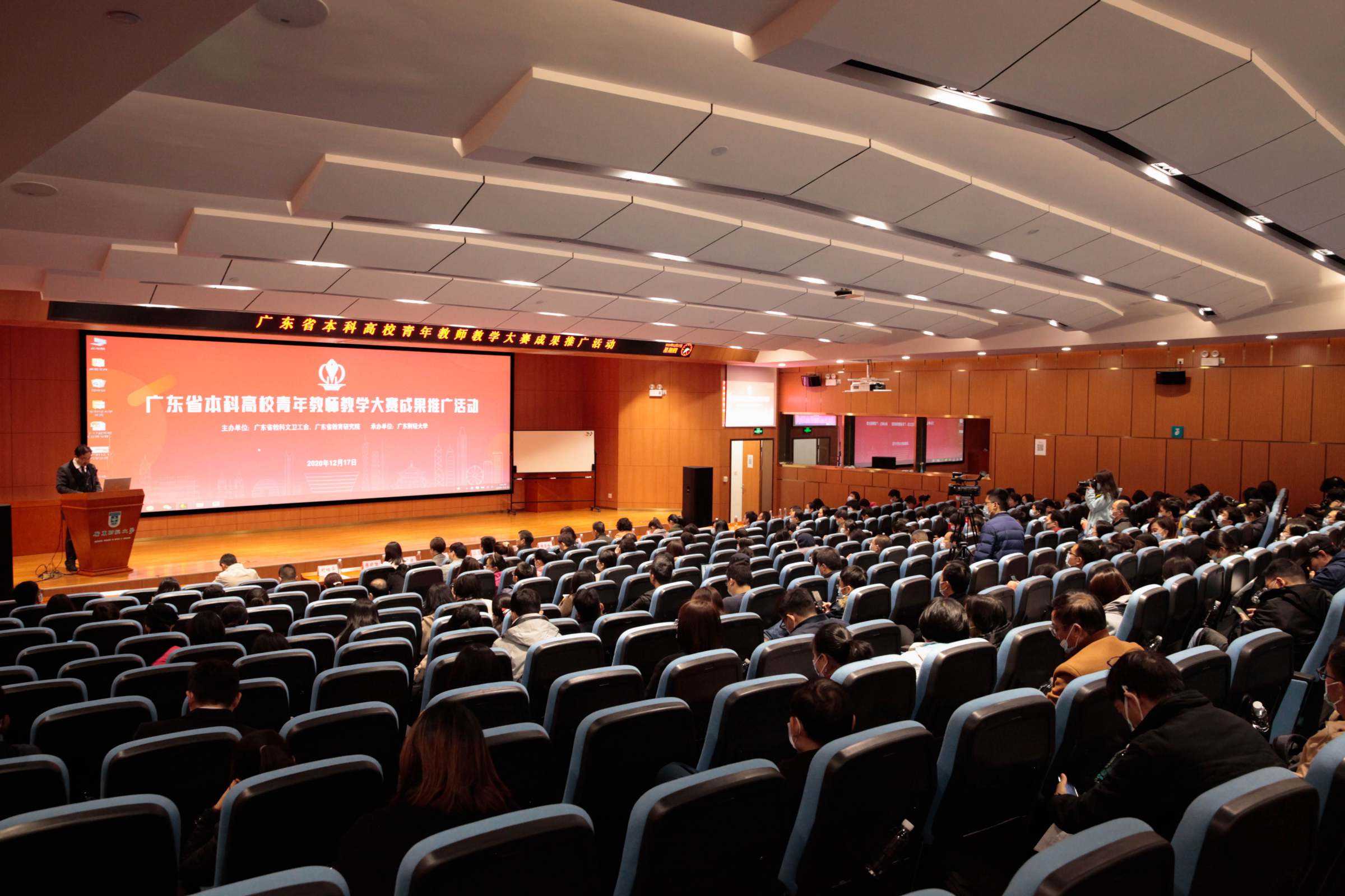 12月17日,广东省本科高校青年教师教学大赛成果推广活动在我校举行。广东财经大学党委书记郑贤操,党委副书记、工会主席刘祖华,广东省教科文卫工会主席谢岩梅、副主席胡建钢,广东省教育研究院副院长汪昌明等出席活动。活动分主会场和分会场两个阶段进行。刘祖华主持主会场活动。省教科文卫工会、省教育研究院等有关部门,我校各学院党委副书记、分管教学的副院长、专任教师、辅导员等230多人参加。