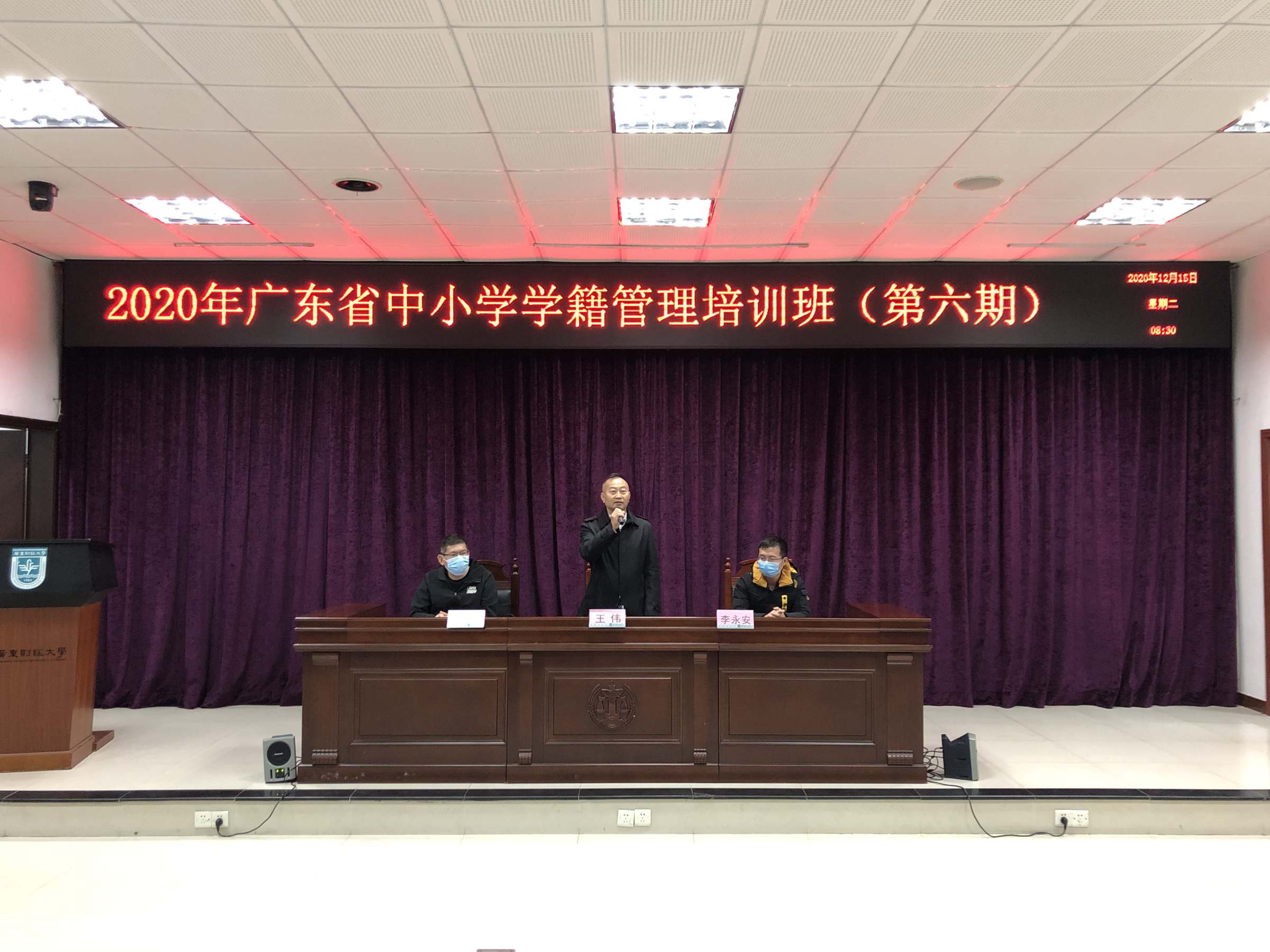 12月15-18日,2020年广东省中小学学籍管理第六期培训班在我校举行,来自湛江市、雷州市等县区中小学学籍主管校领导、学籍管理员共144人参加培训。校党委常委、统计与数学学院党委书记王伟,湛江市遂溪县草潭镇草潭初级中学团总支书记麦小兵,雷州市教育局李永安出席了开班典礼。典礼由王伟主持。