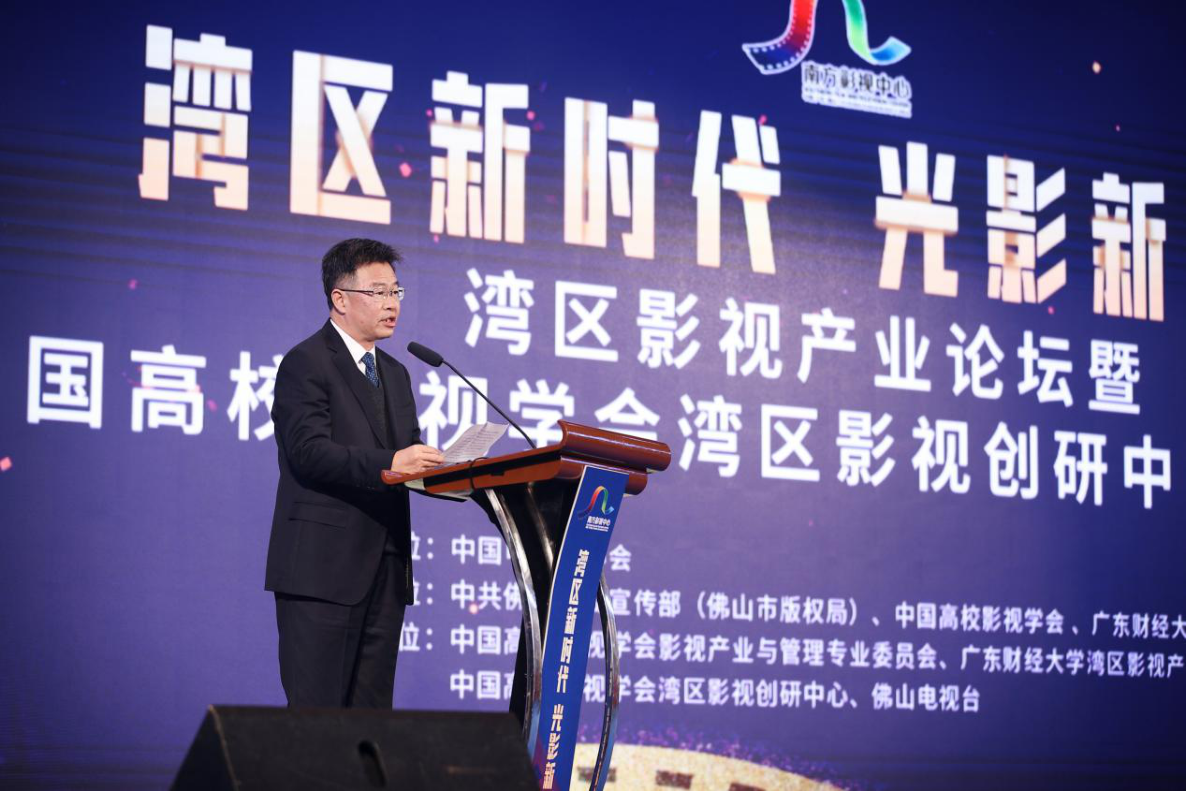12月20日下午,湾区影视产业论坛暨中国高校影视学会湾区影视创研中心成立仪式在佛山南海召开。本次论坛由广东财经大学湾区影视产业学院发起,广东财经大学与佛山市委宣传部、中国高校影视学会联合主办。广东省委宣传部电影处处长陈松、佛山市委常委李政华、广东财经大学副校长陈国栋等领导出席了论坛。