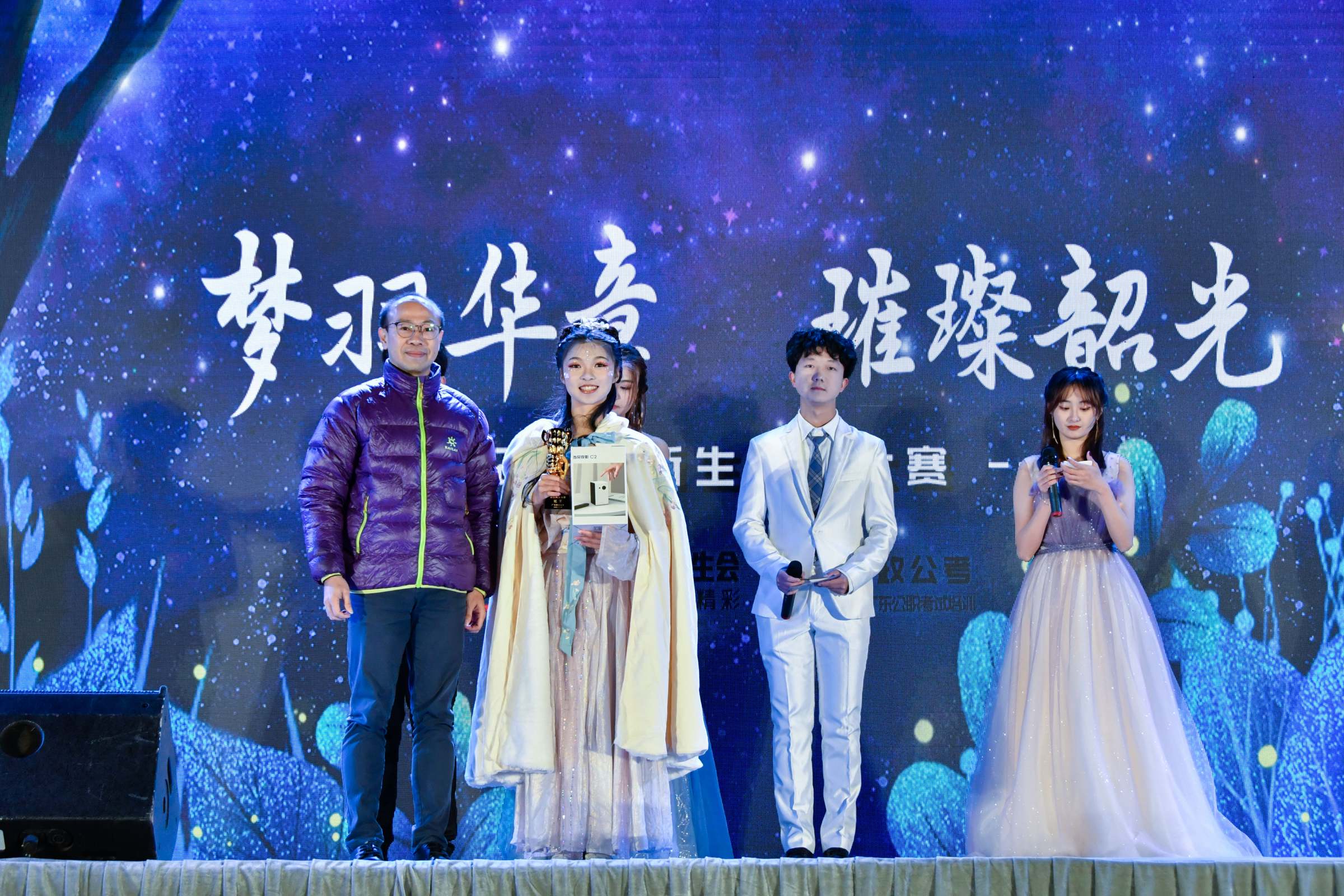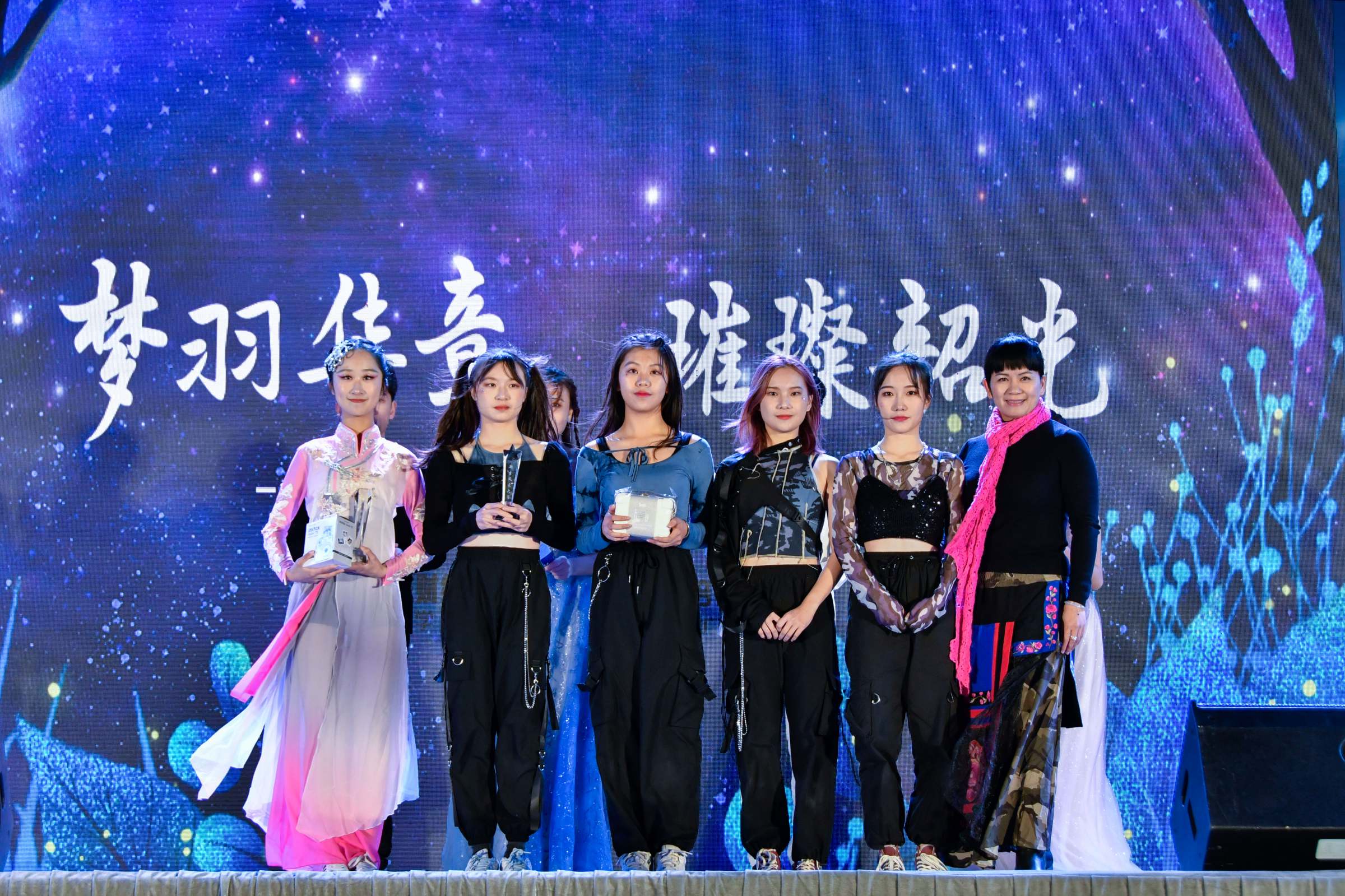 本届新生风采大赛自十月底开始在全校范围内启动,共有来自十六个学院的新生参加了预赛,经过层层选拔,最终有十二个新生的节目经进入决赛,囊括了舞蹈、歌曲、乐器、戏剧等多种表演形式。经过激烈角逐,人文与传播学院选送的《故城忆》获得冠军;工商管理学院选送的《like this》获得亚军,财政税务学院选送的《左手指月》获得季军。