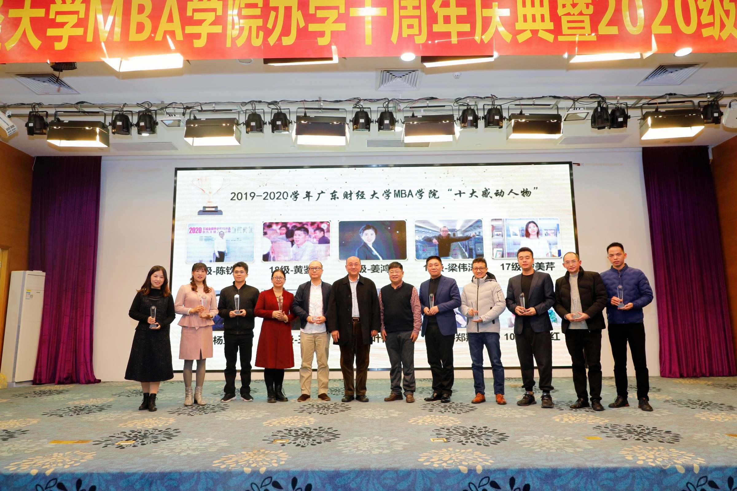 黄晓波、校友办主任曹阳、李焕荣等领导和嘉宾参加了MBA校友基金揭牌仪式,并为赵爱红、姜洪儒、陈钦潮、梁伟涛等优秀校友颁发了“2020年感动MBA十佳人物”纪念杯。