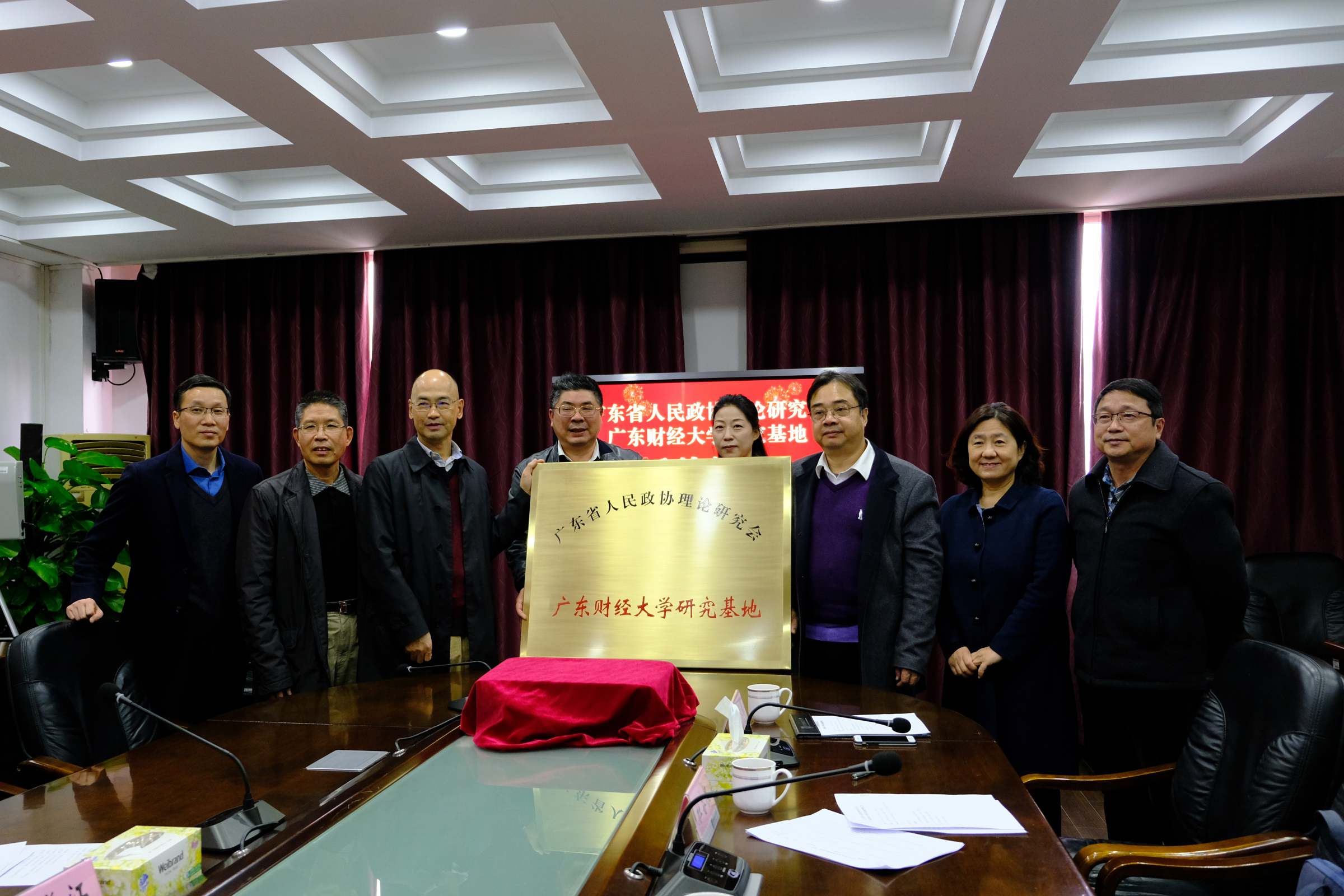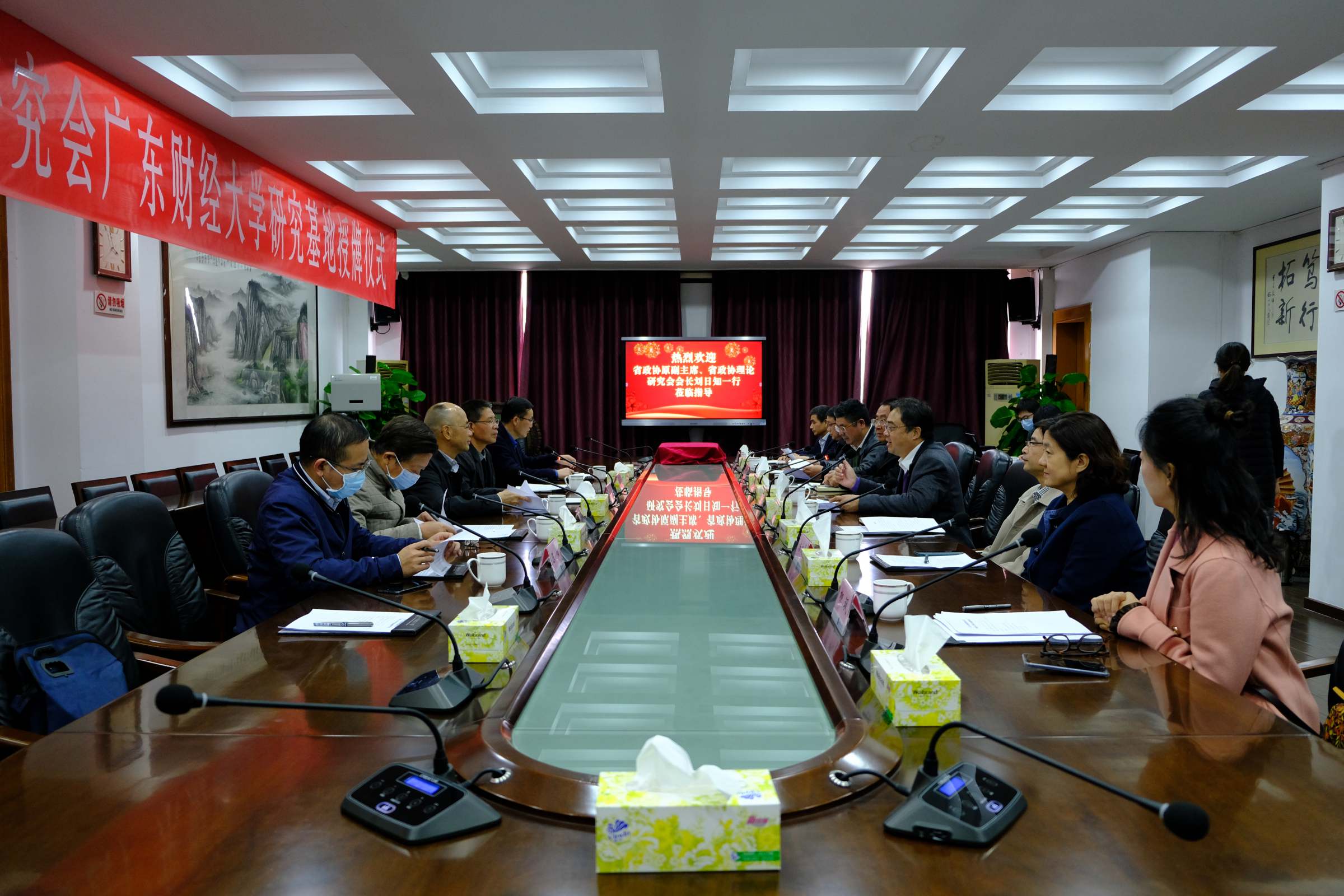 12月22日下午,广东省人民政协理论研究会广东财经大学研究基地授牌仪式在广州校区举行。省政协原副主席、省政协理论研究会会长刘日知,省政协原副秘书长、省政协理论研究会常务副会长吴茂芹,省政协研究室主任、省政协理论研究会办公室副秘书长申长江,《政协理论与实践》副主编李祥熙,省政协办公厅研究室杨镒菲及秘书陈伟,校党委书记郑贤操,党办校办、党委组织部、党委统战部、科研处、研究基地相关负责同志参加了会议。会议由吴茂芹主持。