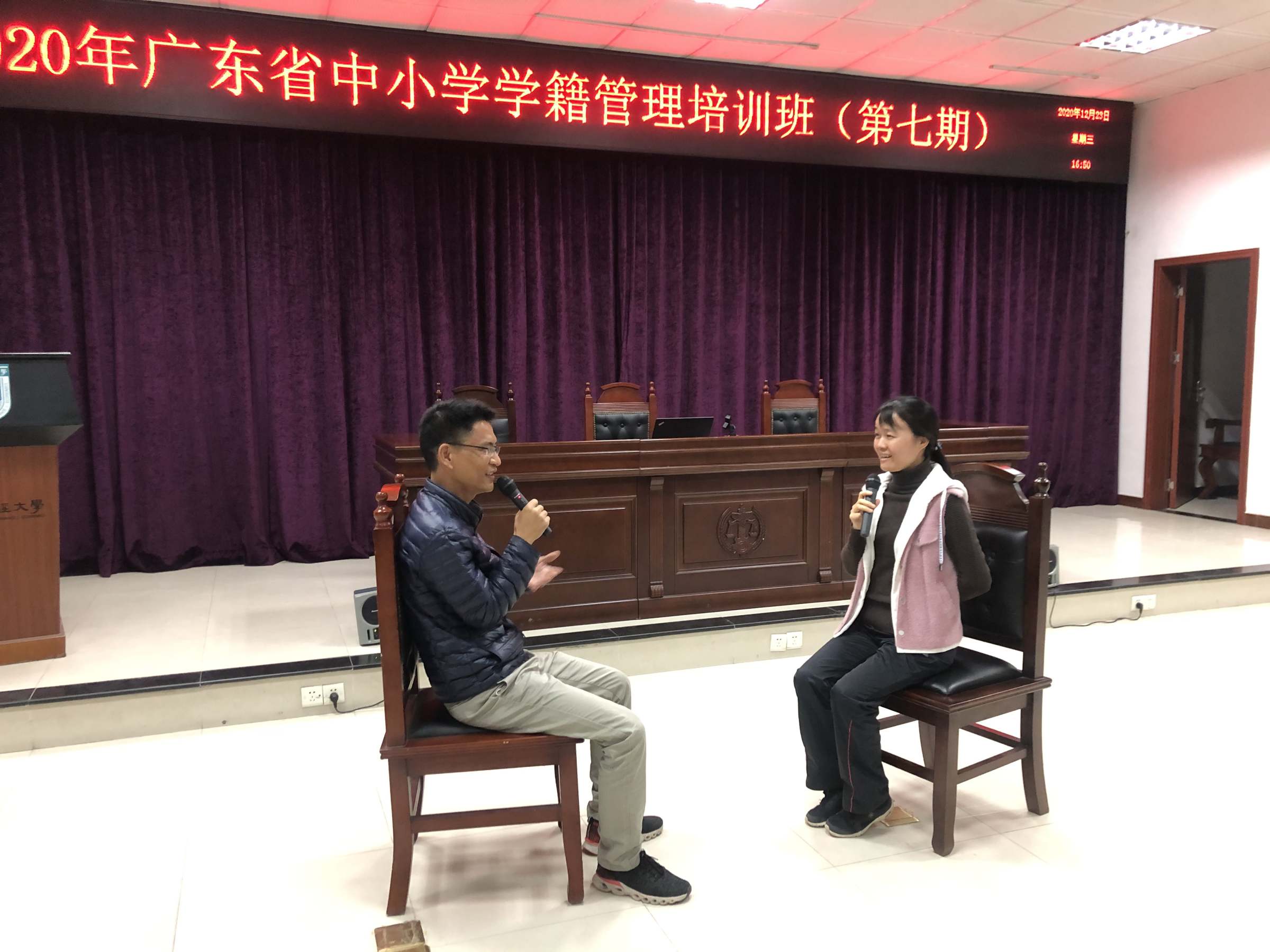 12月22-25日,2020年广东省中小学学籍管理第七期培训班在我校举行,来自广州市荔湾区、茂名市电白区等县区中小学学籍主管校领导、学籍管理员共109人参加培训。校党委常委、统计与数学学院党委书记王伟,学院党委副书记李恩华,广州市荔湾区招生考试办公室干部尹改霞,茂名市电白区教育局党组成员周文津、基础教育股副股长林焕森出席了开班典礼。典礼由李恩华主持。