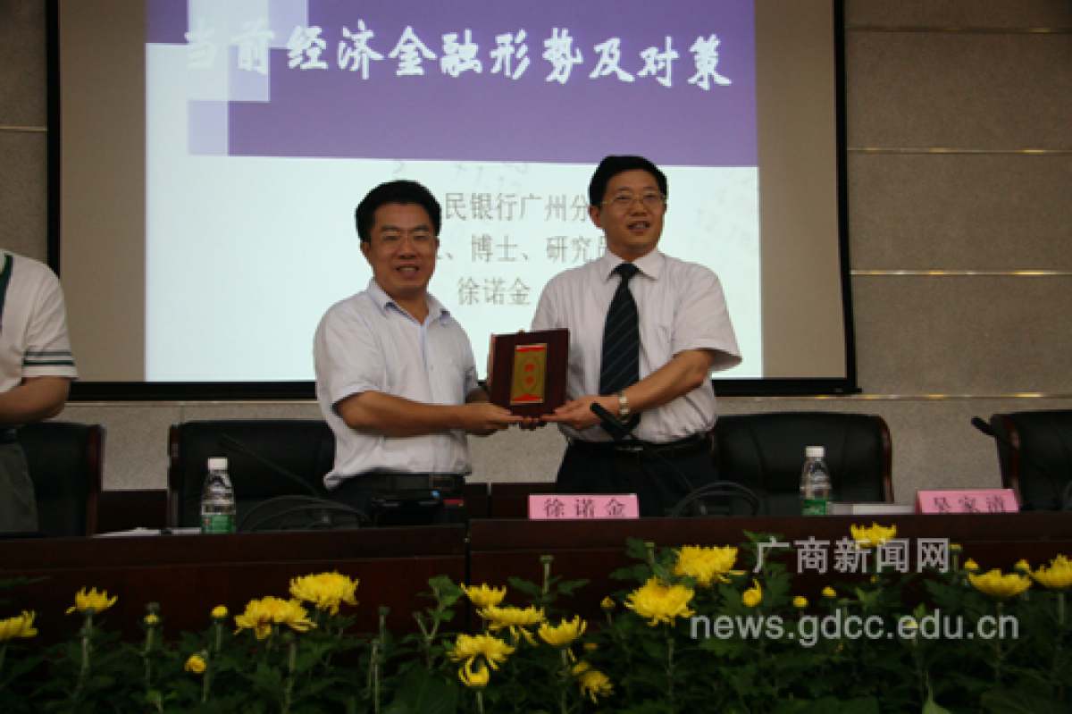 5月29日下午,中国人民银行广州分行副行长、博士、研究员徐诺金受聘我院客座教授并在综合楼408会议厅为我院师生作学术报告。