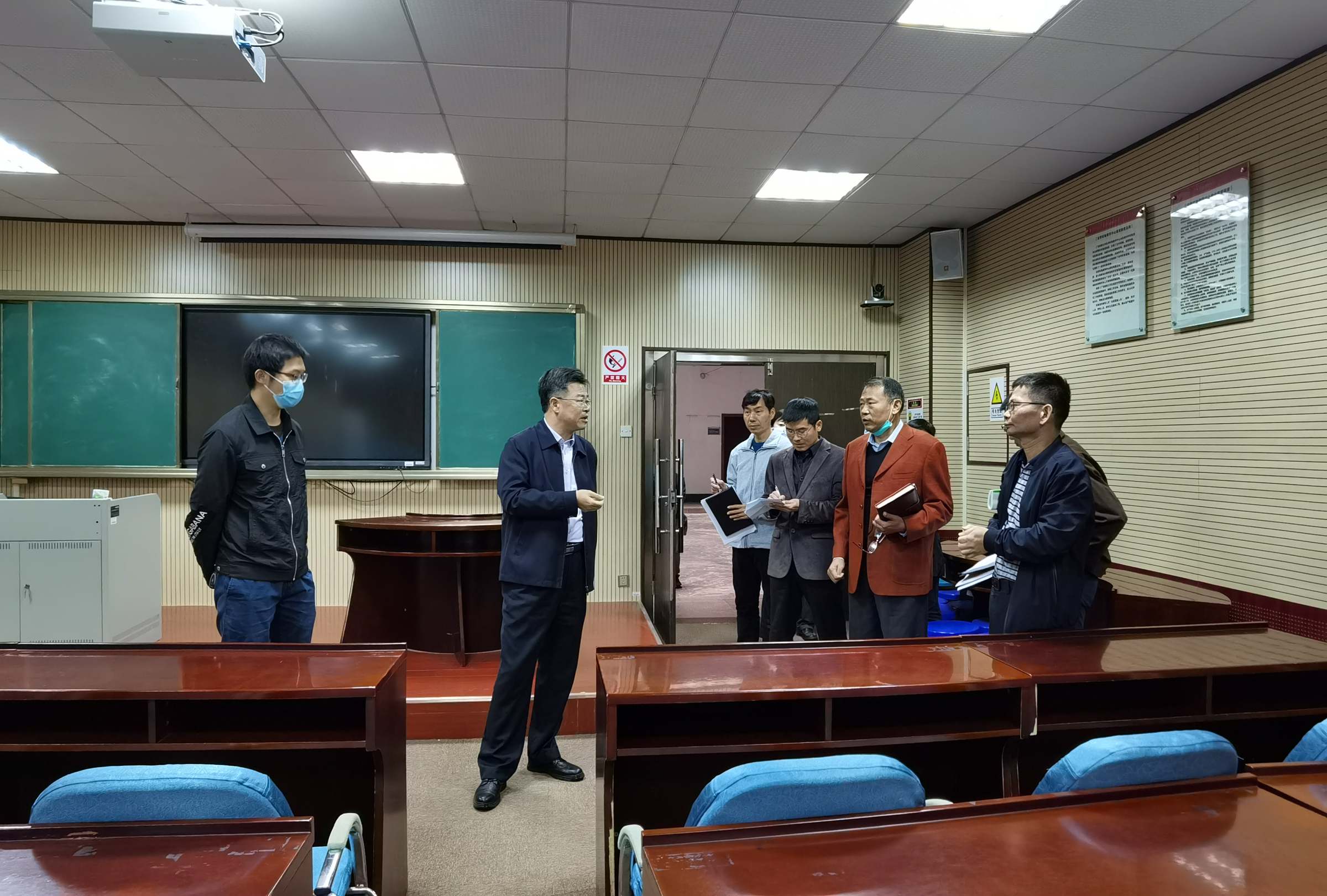 陈国栋一行对食堂、实验楼、23栋防疫隔离区、学生宿舍区、产教融合大楼工地、学校大门口等重点部位进行全面细致的检查。陈国栋要求各单位慎终如始把疫情防控和安全管理摆在第一位,严格做好疫情防控和安全管理工作,落实开学疫情防控工作要求,对检查中发现的问题及薄弱环节,责任单位要立即整改,有困难的要报学校后续跟进处理。陈国栋强调,要牢固树立安全底线思维,加强安全责任意识,建立健全安全长效机制,各司其职,群防群治,确保校园安全有序。