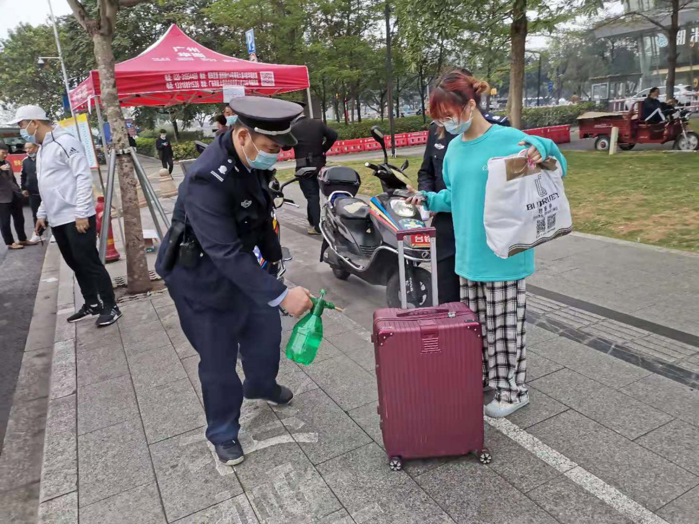 3月5日至7日,学生错峰分批返校开学,校卫队员都打起十二分精神,保证校园防控任务的彻底执行,保卫干部也按照工作方案充实门岗一线,为两个门口的返校工作提供支援。天公不作美,返校三天都是连续的阴雨天,这给拖满行李的学生们带来了不小的负担,校卫队员们以服务师生为宗旨,帮助学生们搬运行李,特别是在地铁站便民车岗位处的队员们,任劳任怨,只为让学生们轻松点,让他们感受到回校搬运行李不再是件徒增烦恼的事。