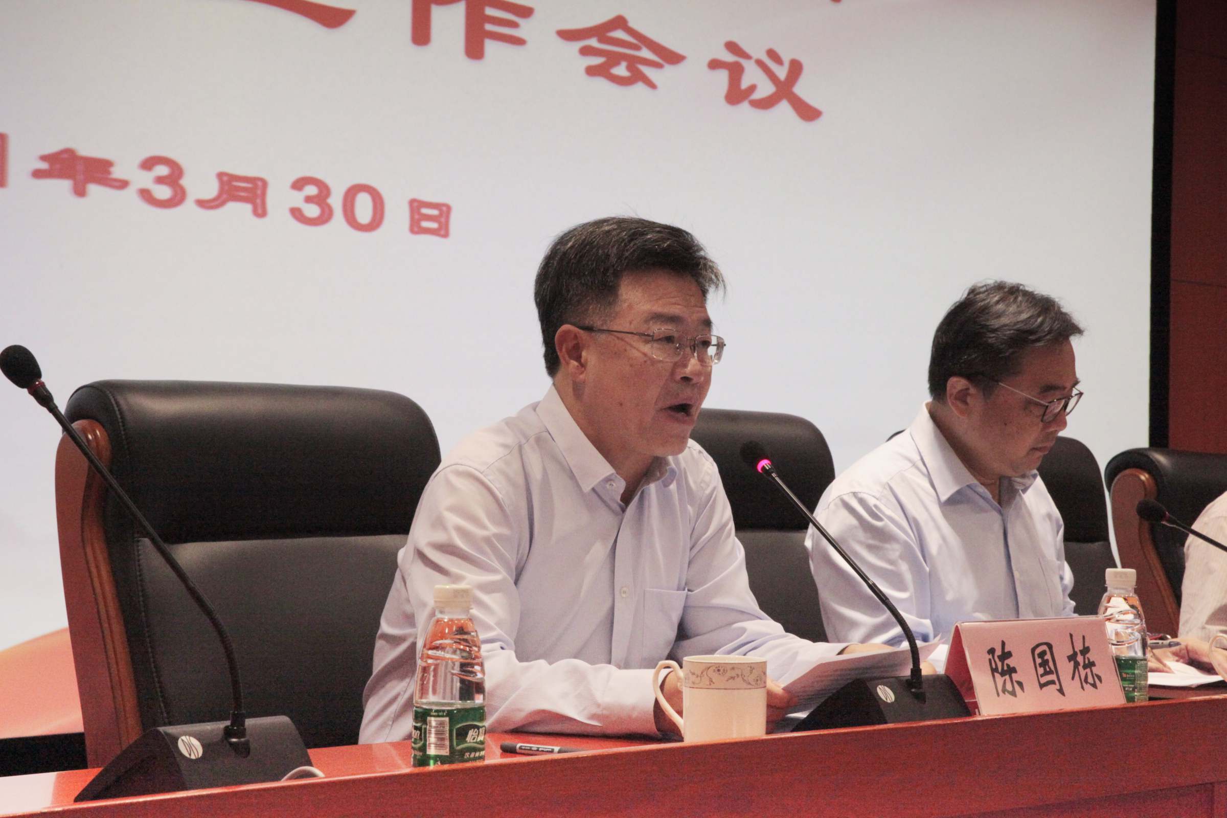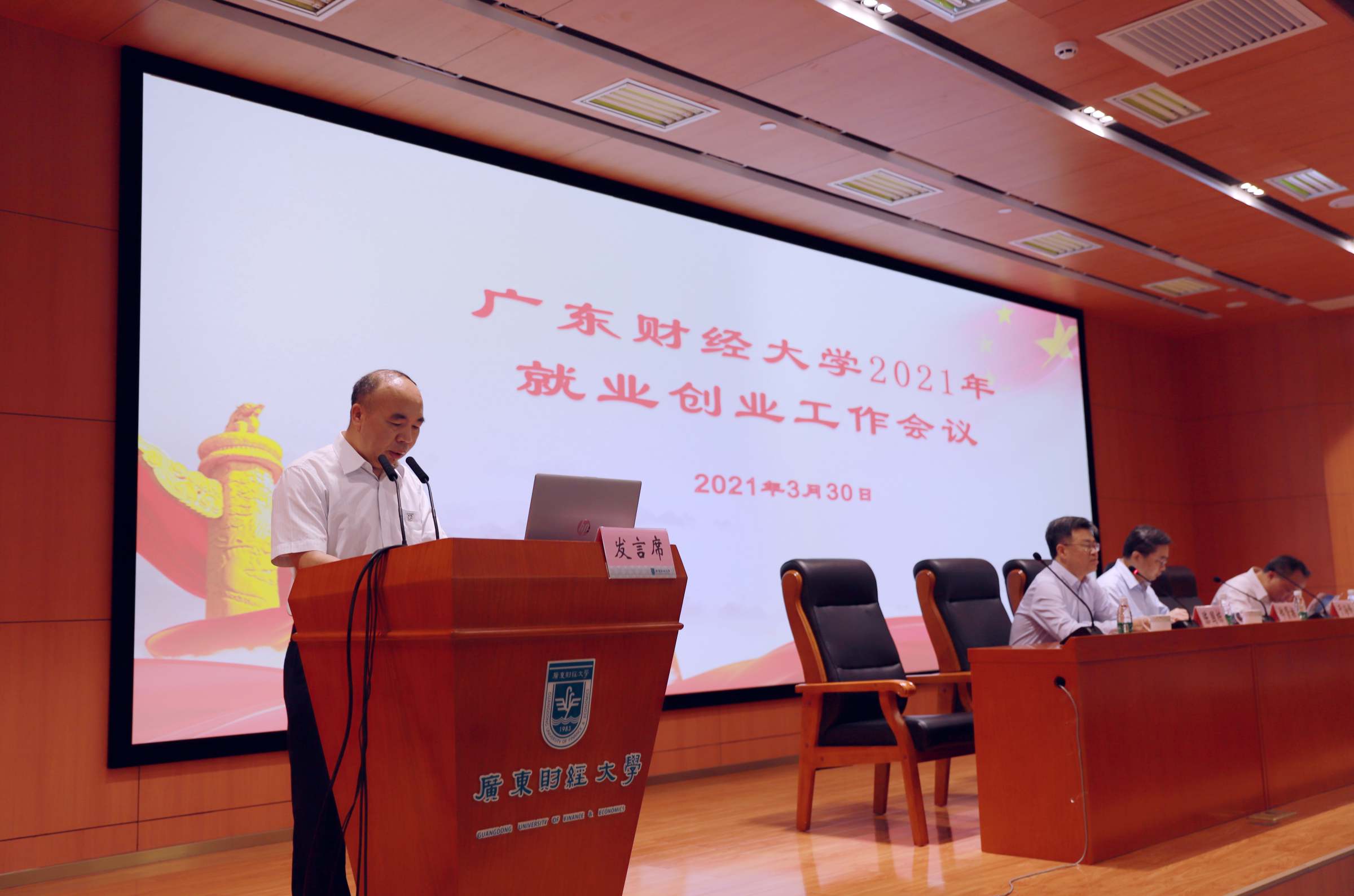 3 月 30 日上午,我校2021 年就业创业工作会议在正心堂召开。校党委书记郑贤操、校长于海峰、副校长陈国栋,相关职能部门负责人、各学院党委(党总支)书记、院长、分管教学工作副院长、学生工作负责人、毕业班辅导员参加了会议。陈国栋主持会议。