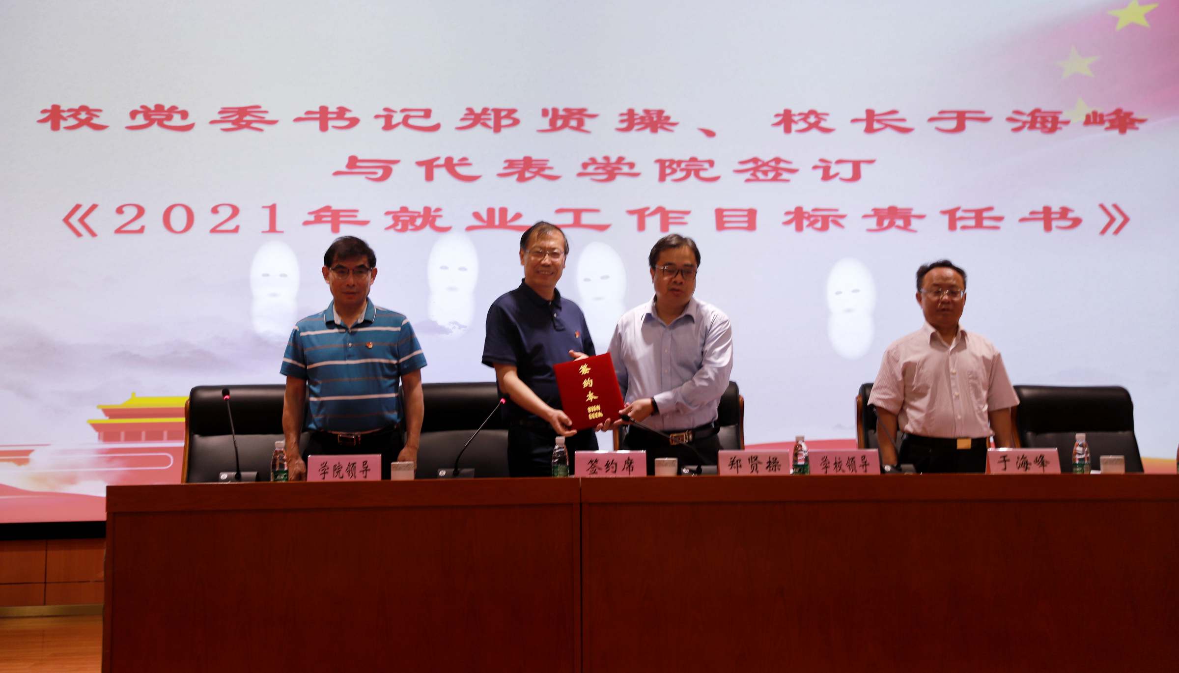 会上,郑贤操、于海峰与学院党政一把手签订了《2021 届毕业生就业创业工作目标责任书》。公共管理学院院长庄大昌、艺术与设计学院产品设计系主任熊青珍教授、地理与旅游学院辅导员龙汛恒分别作交流发言。庄大昌主要介绍了学院2020年毕业生就业工作前置、拓宽就业渠道及特殊群体毕业生帮扶的做法。熊青珍介绍了学院全员关心推动就业的特色做法,就如何落实立德树人、努力打造优质课程、提升教学质量和学生综合素质谈了个人的思考。龙汛恒分享了组建班级网格化就业工作队伍、配合学业导师队伍推动学生就业及用心用情做好指导服务的心得体会。