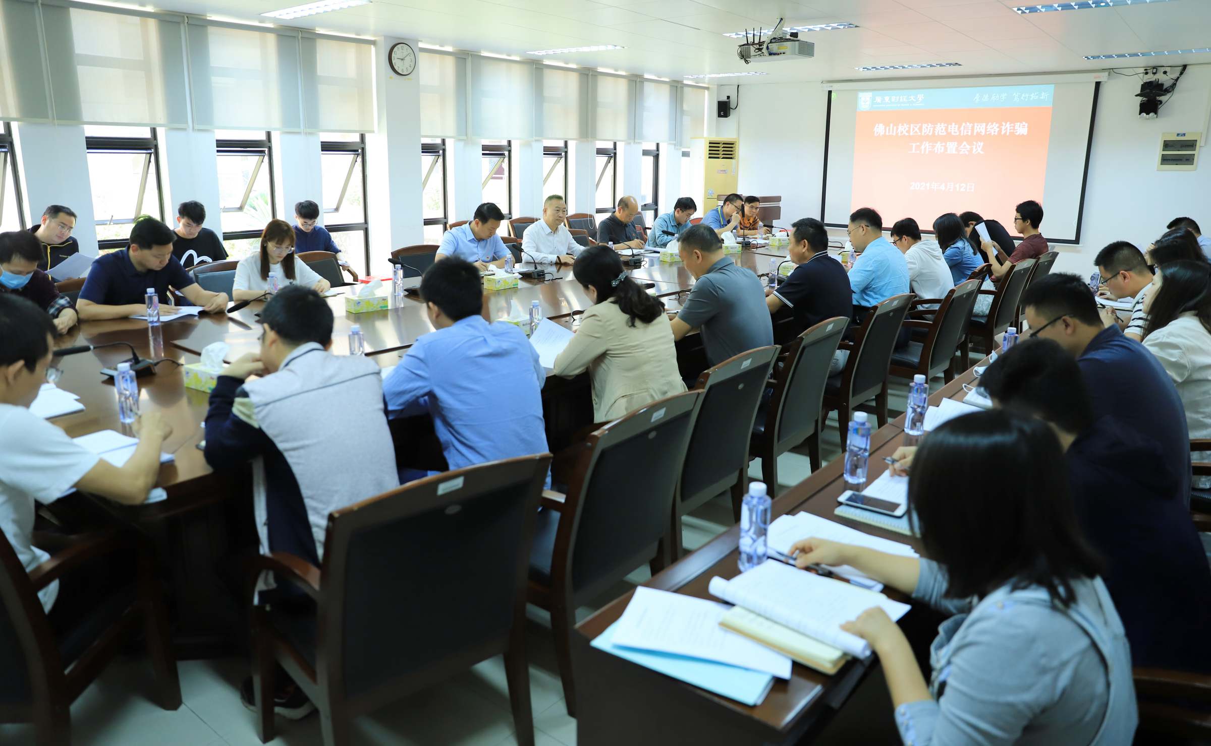 4月12日上午,佛山校区召开预防电信诈骗专题工作会。佛山校区管委会领导、相关部门负责人及校区全体辅导员参加会议。会议由校区党委副书记钟智主持。