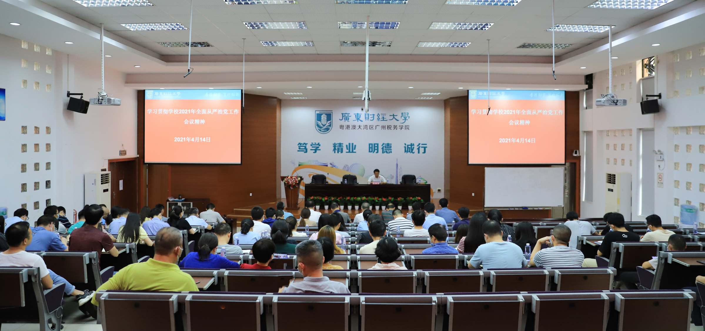 4月14日下午,佛山校区党委召开全面从严治党专题会议,校区全体教工党员参加会议,会议由佛山校区党委副书记钟智主持。