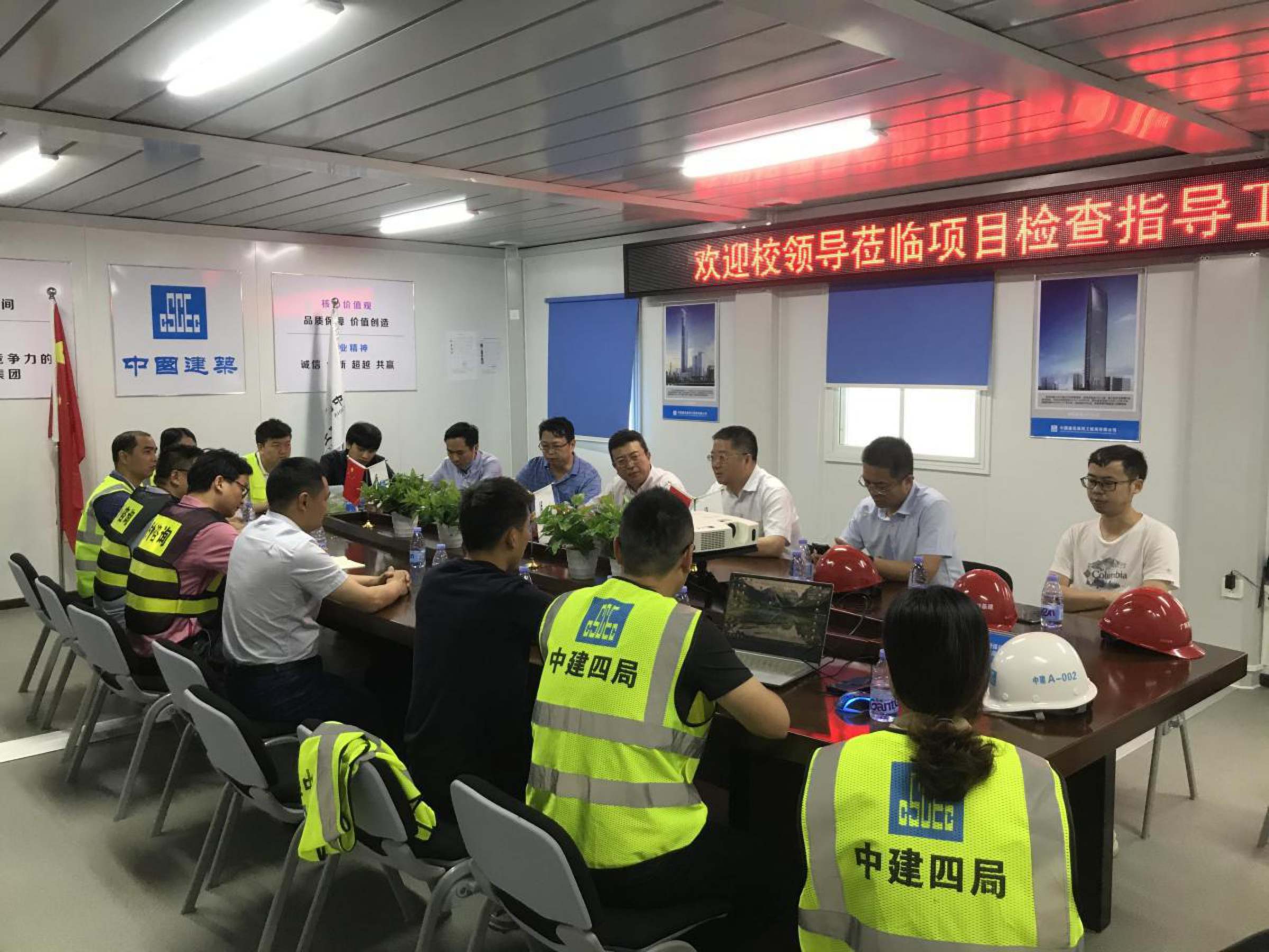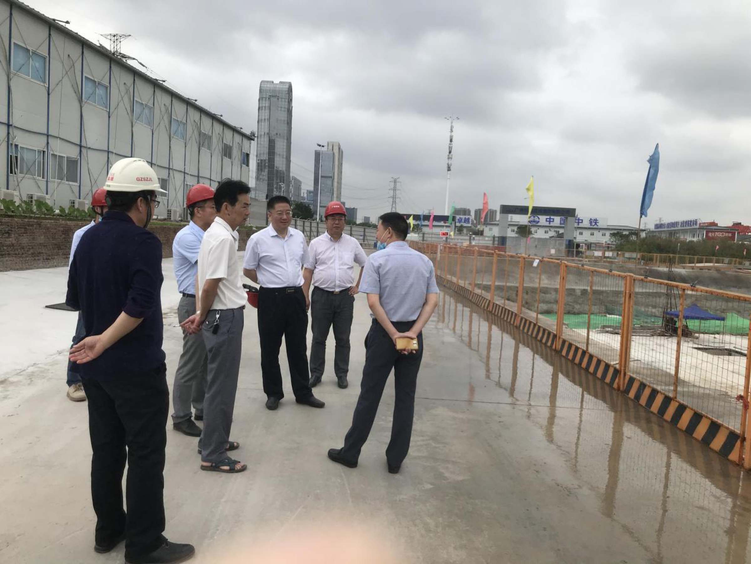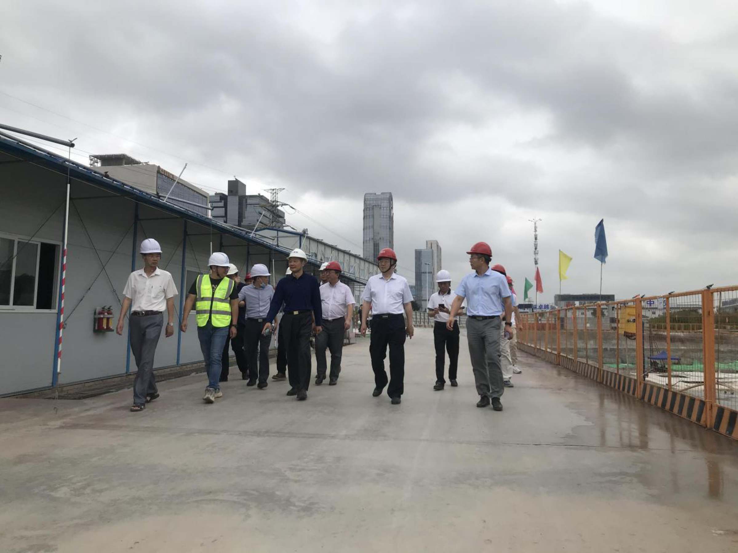 随后,丁友刚一行至广东现代服务业产教融合综合实验实训中心项目的施工现场检查,就工程进度等相关事项与广东省代建局总工程师刘晓冬及项目相关负责人进行了沟通,要求省代建局加大现场管控力度,确保工程按计划交付使用,同时要求做好疫情防控常态化工作。