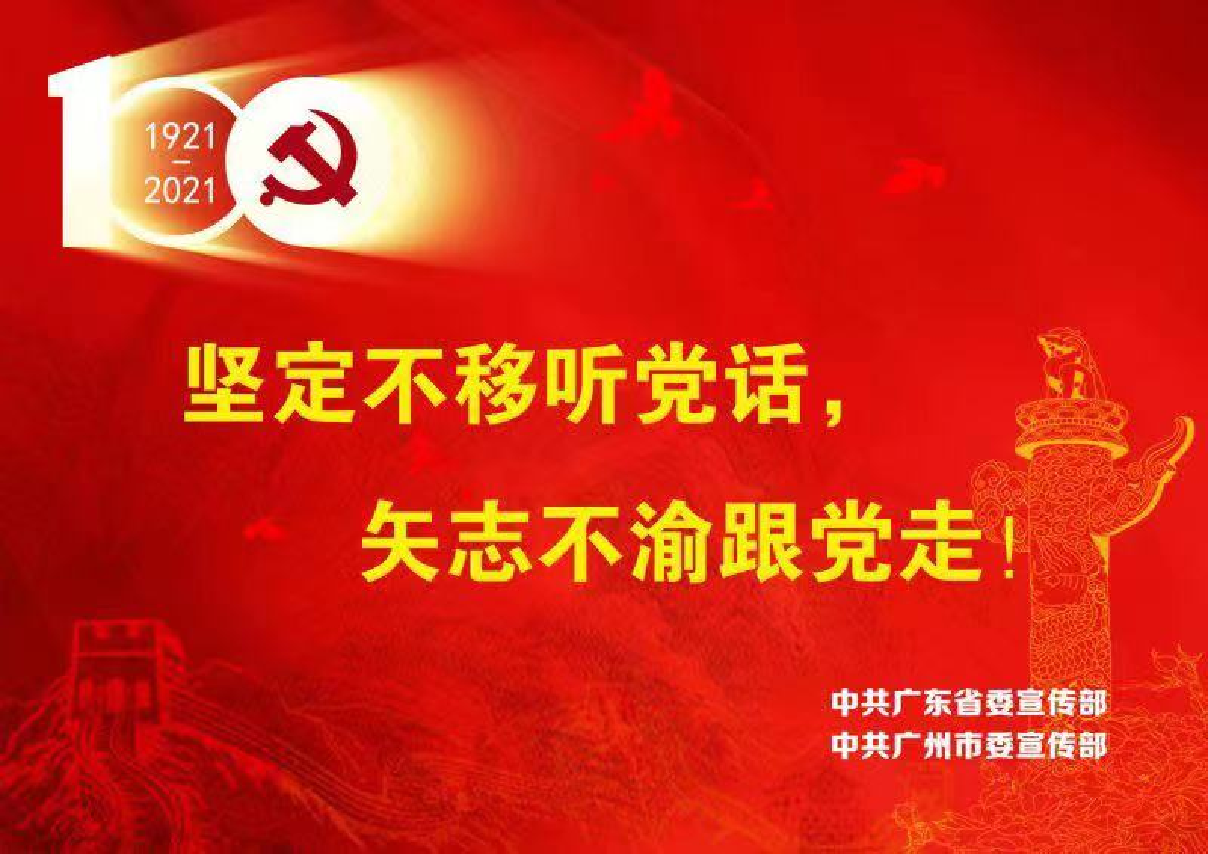 为做好迎接中国共产党建党100周年宣传工作,中共广州市委宣传部委托我校艺术与设计学院,以迎接中国共产党建党100周年为主题,创作设计“坚定不移听党话,矢志不渝跟党走”“听党话 跟党走”“伟大的中国共产党万岁”系列主题作品。