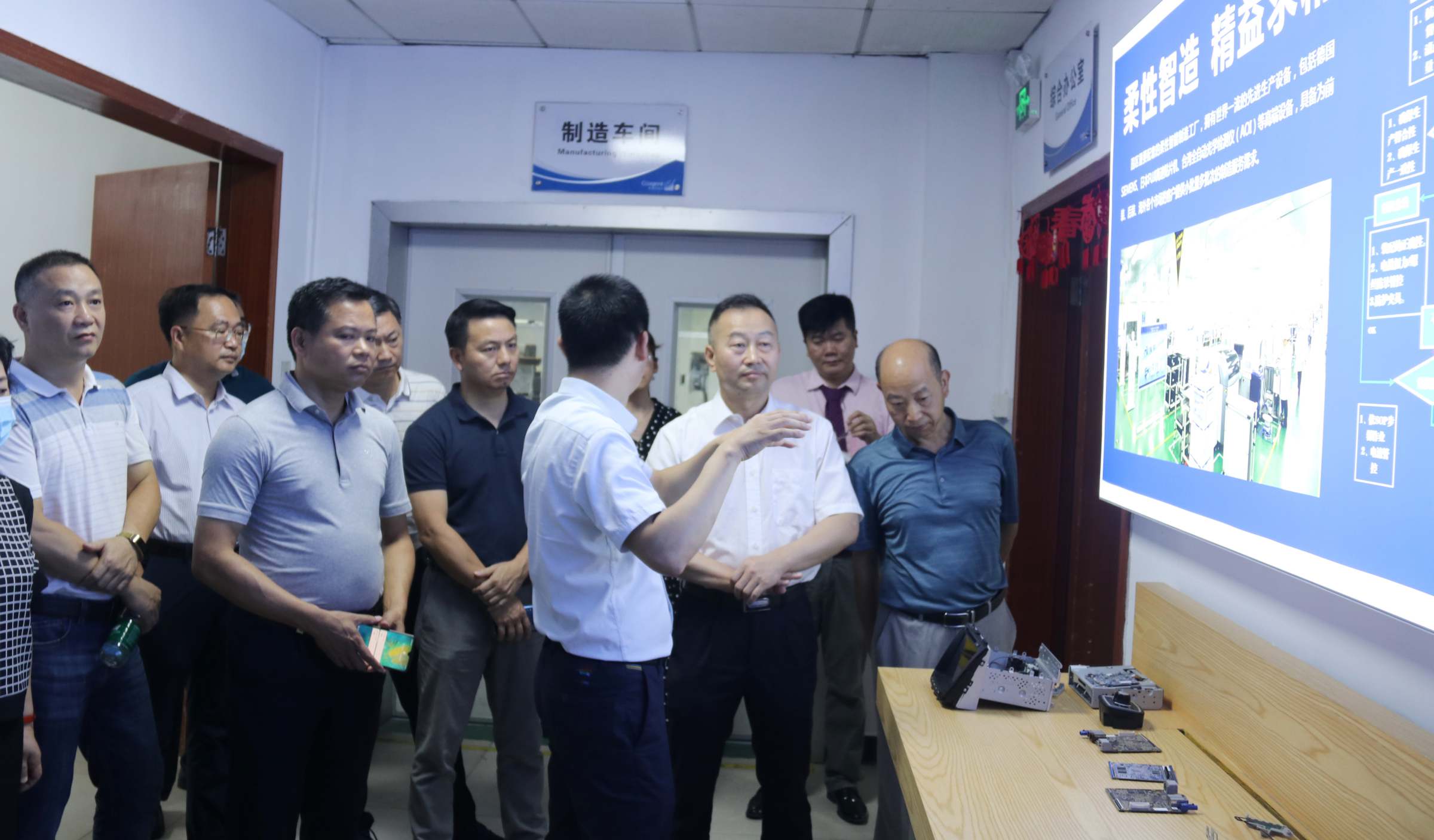 交流结束后,王伟一行又前往华南汽车智能电子集成创新产业园调研,参观了制造车间、翼卡车联网实验室等。