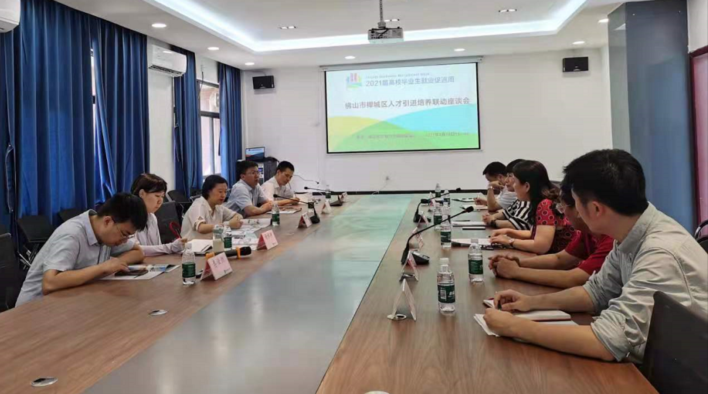 与会人员就加强禅城区人才引进和我校人才培养的联动、促进用人单位与毕业生精准匹配对接、实现校地共建人才有效匹配输送、更好地服务佛山经济和社会发展等方面进行了交流讨论。