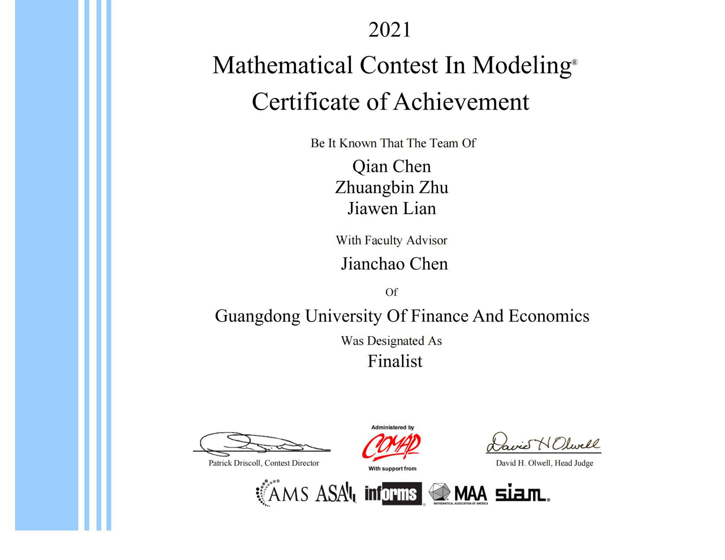 2021年是全国大学生数学建模竞赛举办的第30年,据媒体分析,我校国赛成绩在全国高校本科组中名列广东省本科高校第二,全国财经院校第二。