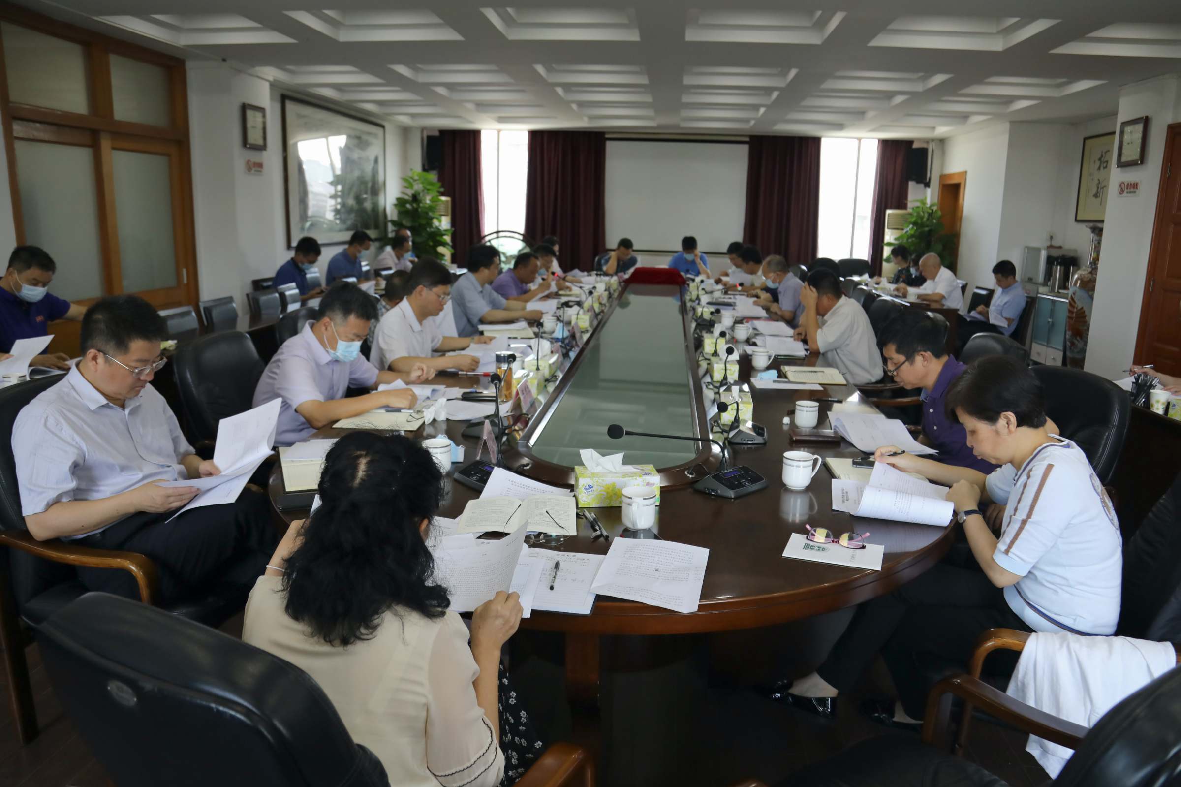 依法治校领导小组会议讨论研究了学校法治工作会议方案及有关会议材料。法制办公室主任王健汇报会议筹备及会议材料起草等有关情况,依法治校领导小组成员对会议方案及有关会议材料纷纷发表了意见。