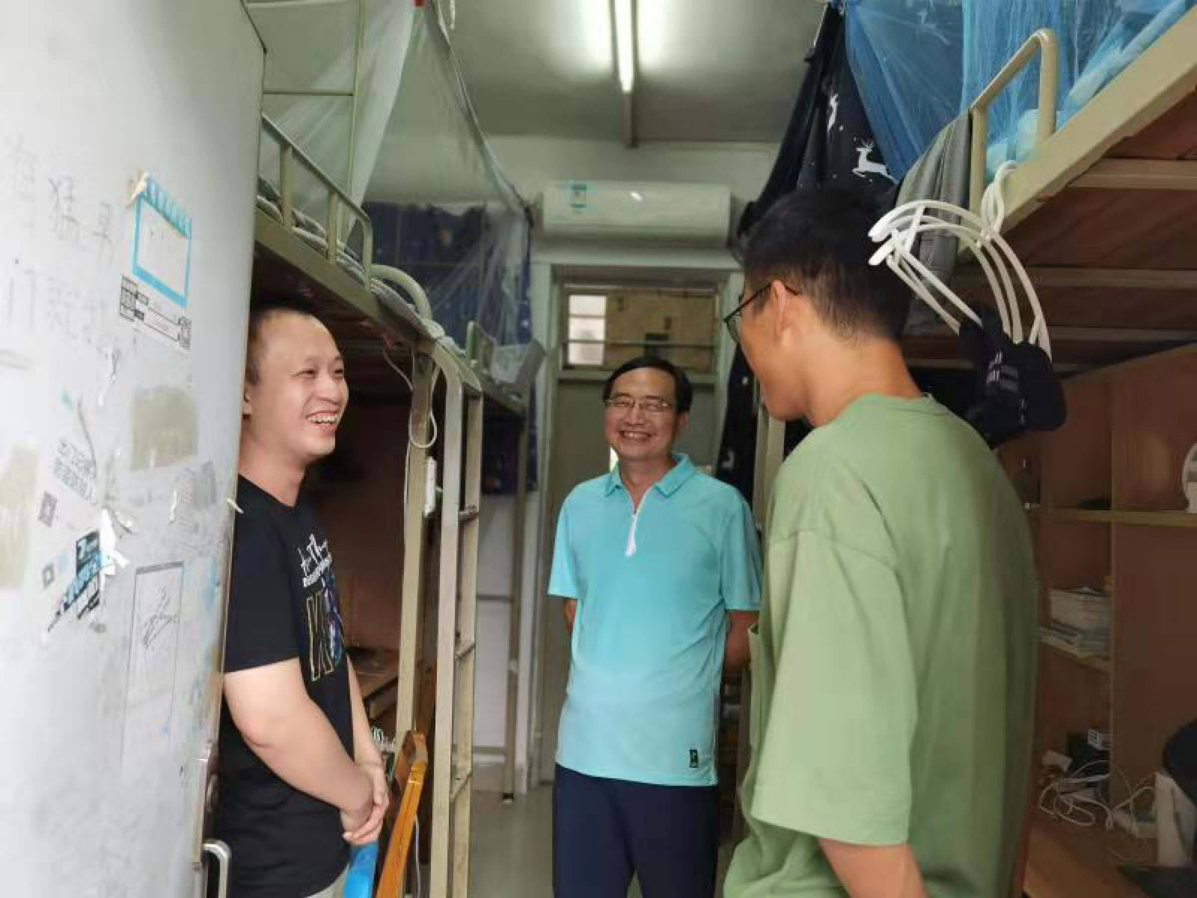 8月6日下午,研工部部长谢雄伟、副部长郑田等人走访广州校区20栋、28栋宿舍,察看研究生新生宿舍准备工作情况,并看望暑期留校研究生。