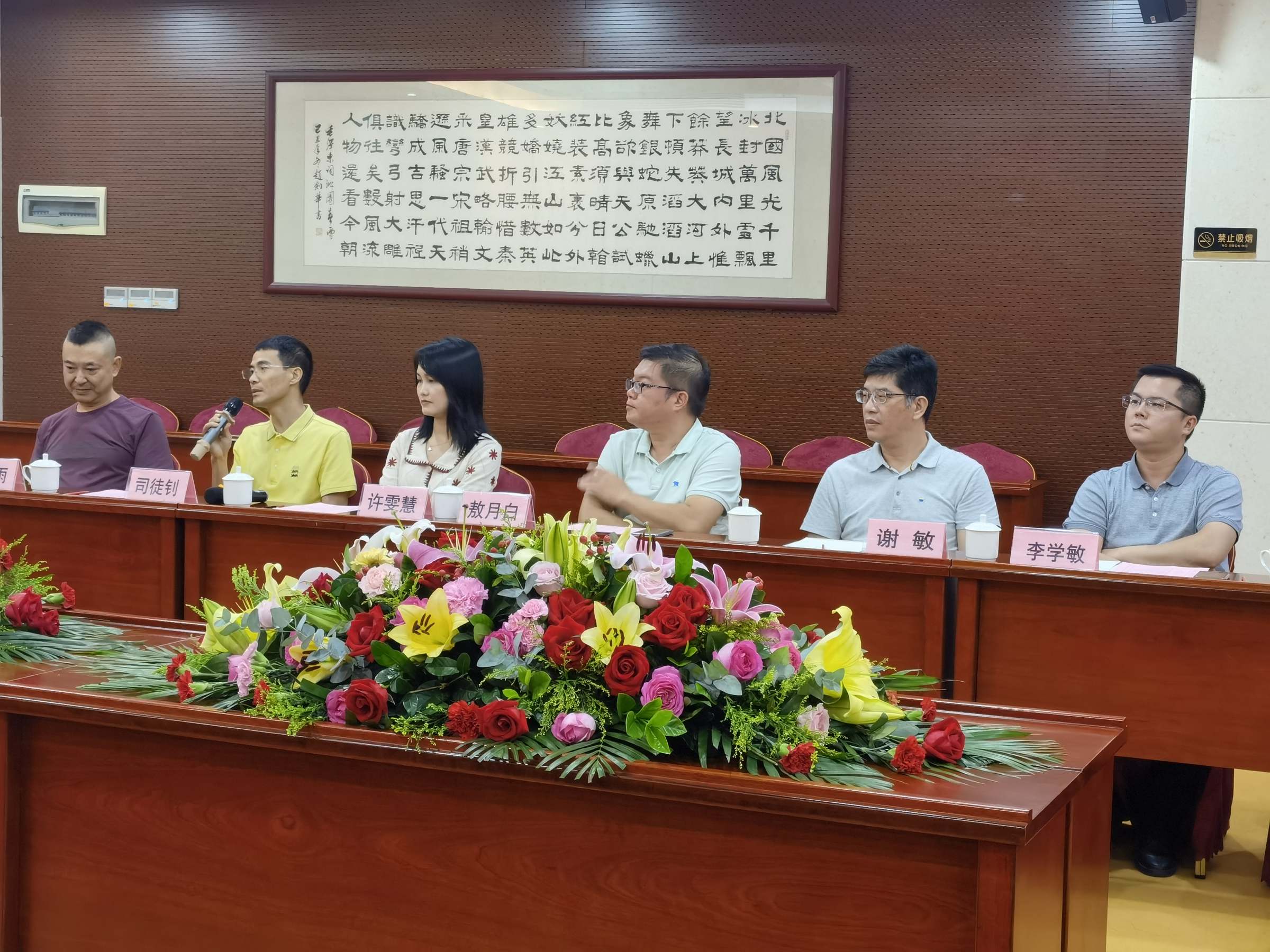 校友阳江市商务局党组书记凌凤萍和阳江市委组织部人才科科长李学敏等陪同于海峰一行参观了阳江市高层次人才活动中心(人才驿站)。随后,在阳江国贸中心举办校友座谈会。