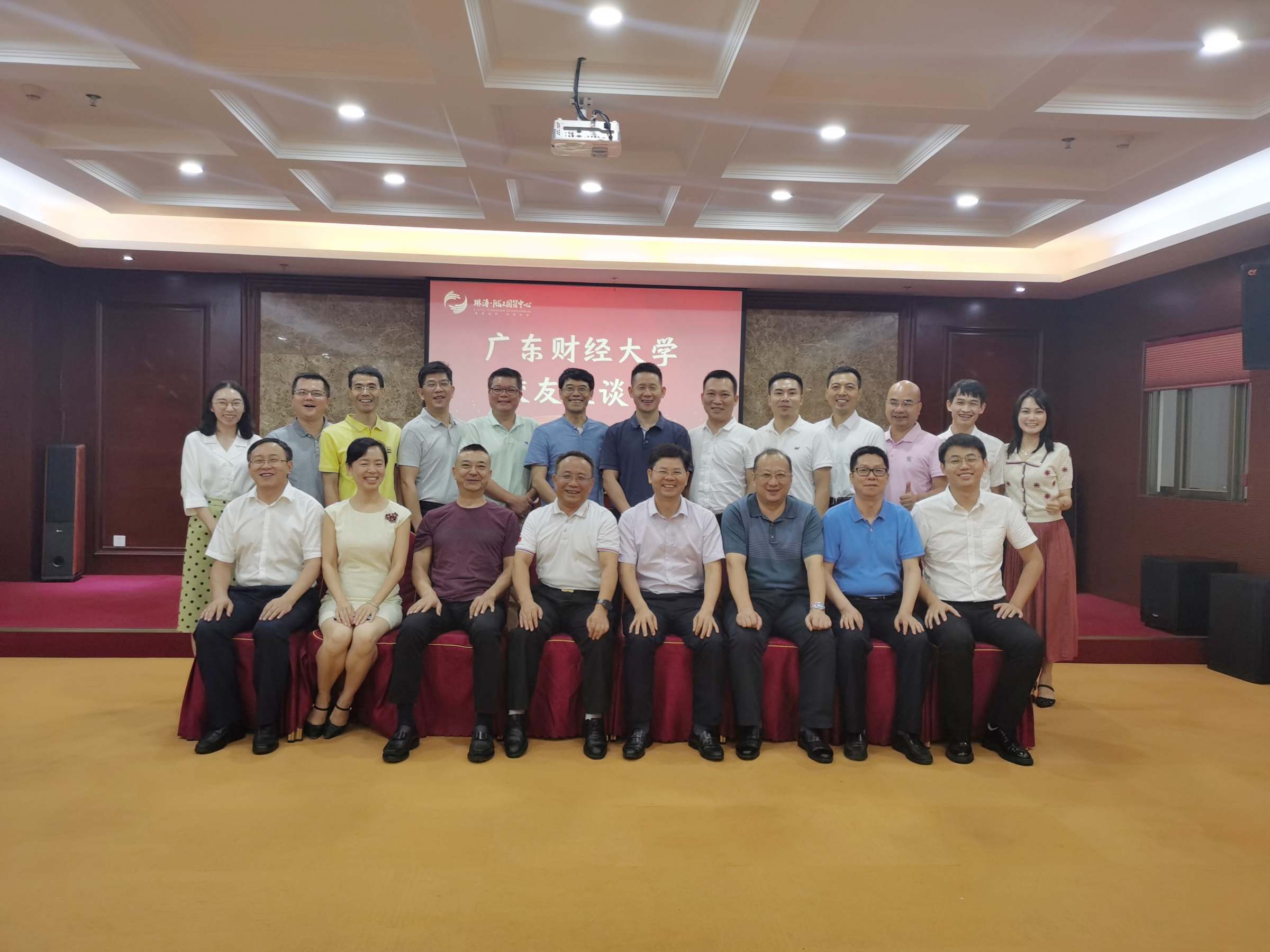 罗贤甲从人才培养、师资队伍、科学研究、社会服务、十四五规划等多个方面向校友们介绍了学校近期的建设与发展情况。段丹向校友们介绍了广东财经大学校友会和教育发展基金会的概况以及校友工作思路。