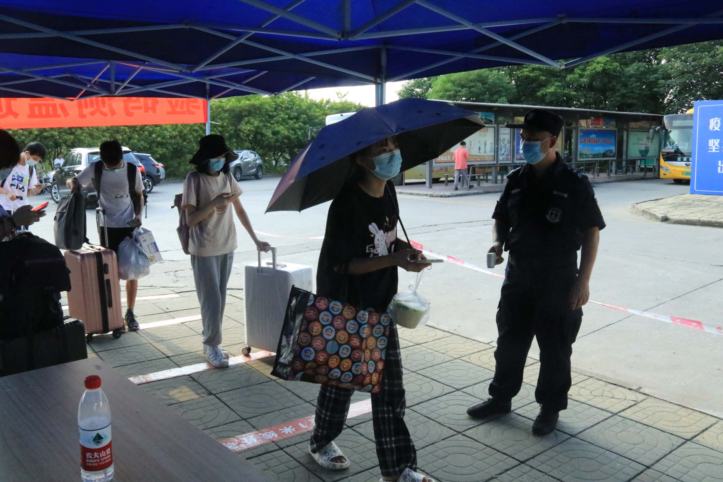 “同学,请出示返校码、学生证、健康码、行程码及48小时内核酸检测阴性证明,走这边测温。” 在门卫的指引下,同学们积极配合疫情防控工作,依次有序进入校园。校内电瓶车正静静守候同学们的到来,期待着随时开启一段通往“家”的温馨之旅。