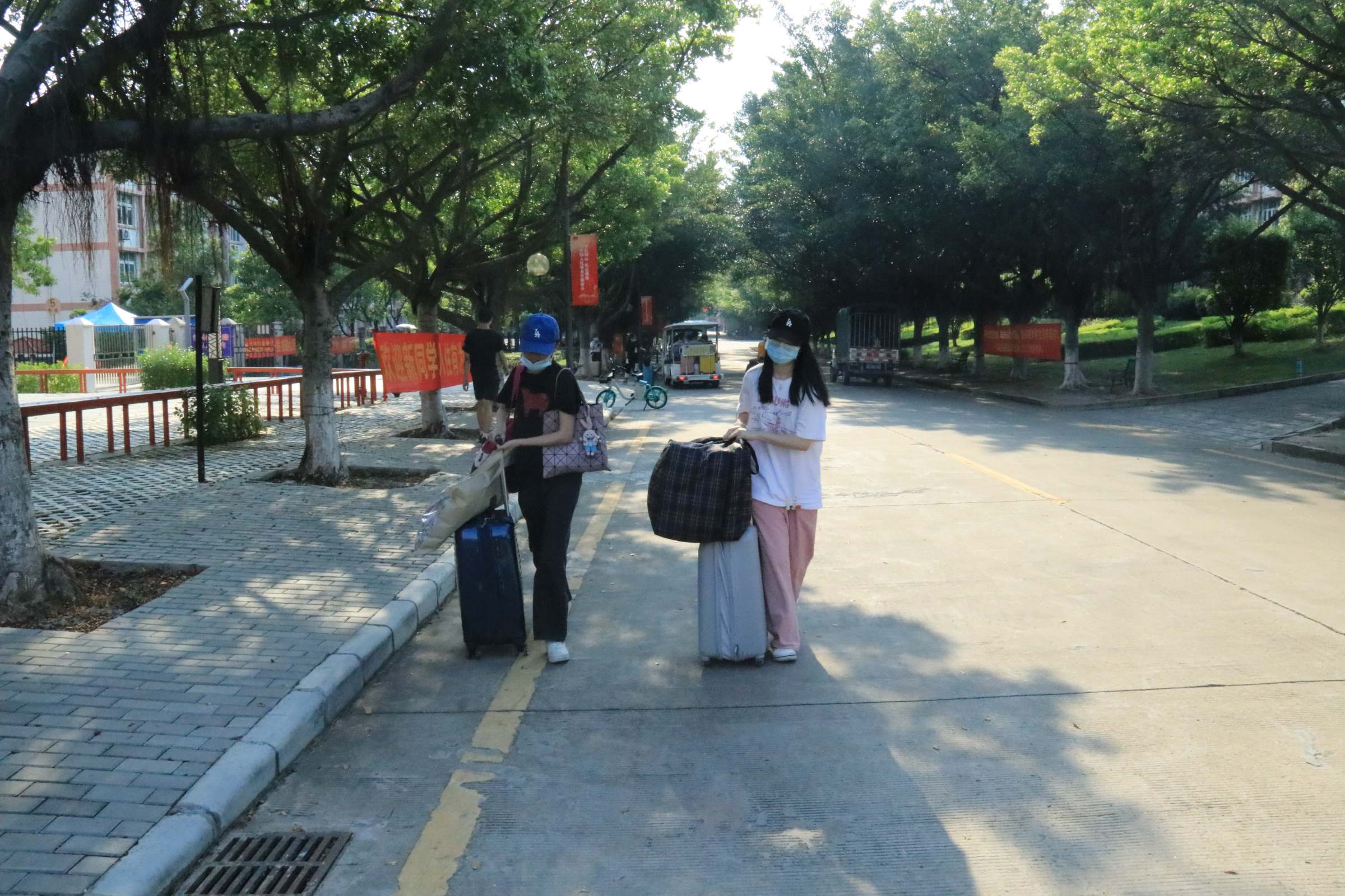 绿荫道上,一栋栋优雅美丽的教学楼、干净整洁的宿舍楼矗立在校道两旁,寂静的校园又恢复了往日的勃勃生机。同学们迎着阳光、沐着清风,怀着对新学期的憧憬、带着就要见到久未谋面的老师同学的欣喜激动,拉着沉甸甸、装满了家人祝福的行李箱,踏步走向宿舍园区。