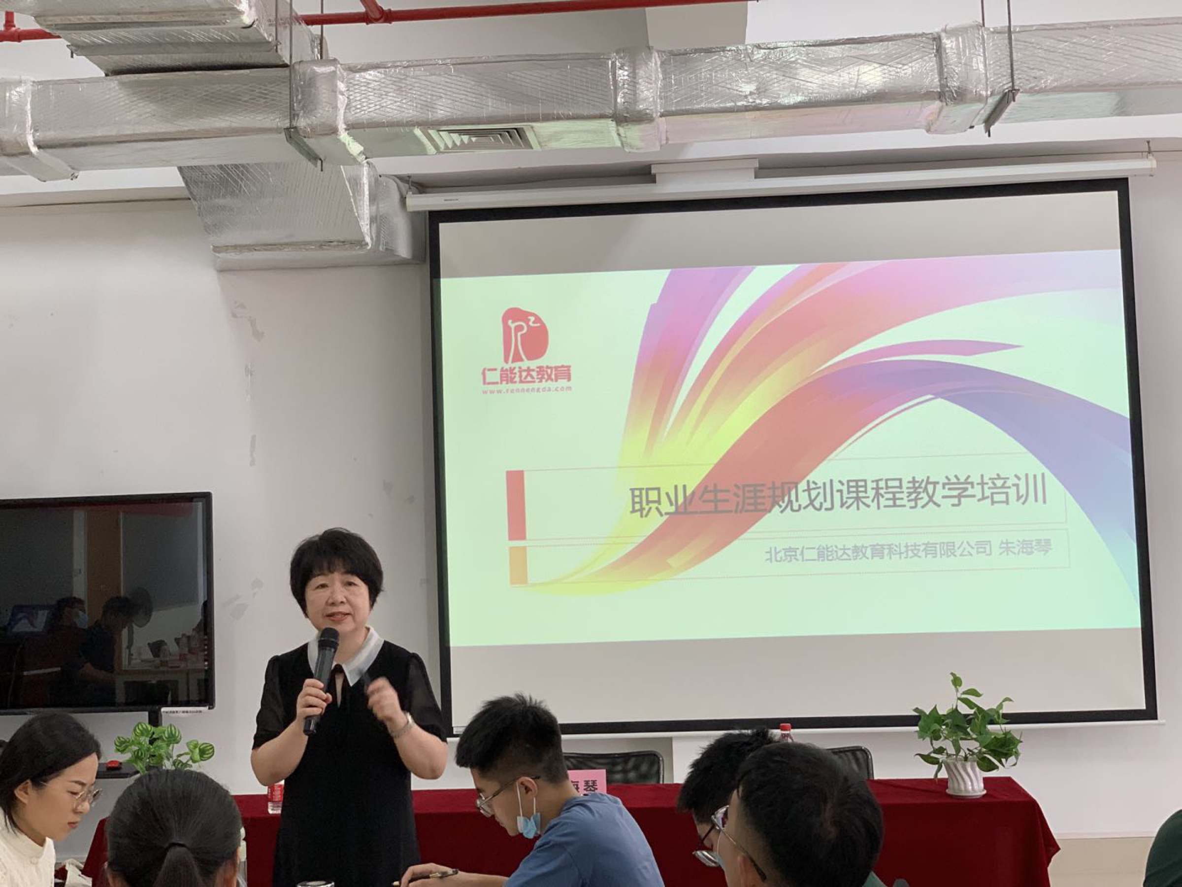 北京仁能达生涯研究院专家组成员、江西财经大学大学生职业发展促进中心主任朱海琴担任本次培训讲师。她从生涯视野拓展、信息与个人定位、目标胜任力探索、个人规划与计划四个主题讲授了《大学生职业生涯规划与发展》课程教学开展与技能提升技巧。