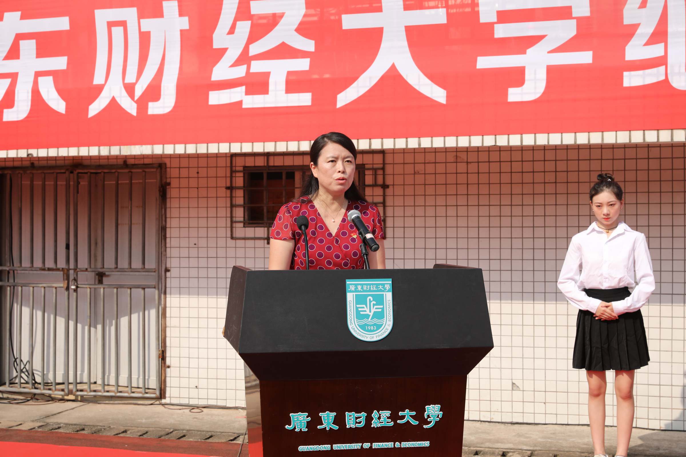 教师代表熊青珍发言。她形象地把广财当做“充电”“蓄电”和“放电”的大磁场,在“充电”的磁性场当中,叮嘱学生要向老师学习,多去图书馆畅游书海;利用“蓄电”的原动力在运动场上练就强健的体魄;用“放电”的锋芒度刻苦学习,勇于拼搏,以优异成绩回报学校、老师和家长。