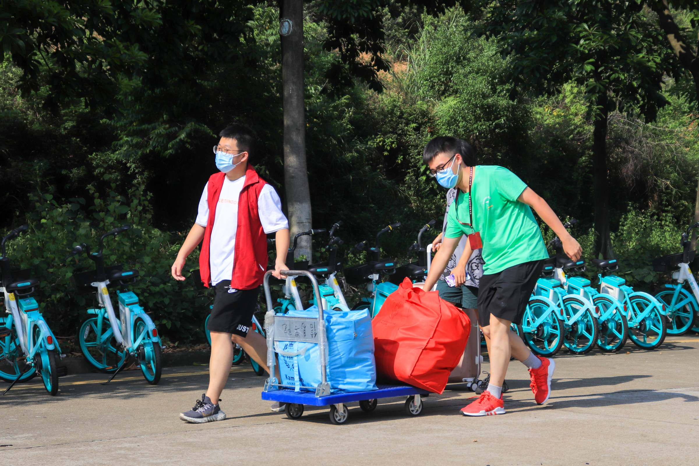 9月7日,天刚亮起,学校工作人员和志愿者早早准备就位。随着小萌新的到来,校园逐渐热闹起来,佛山校区为新生们提供各种帮助:安排了志愿者对新生进行多对一的行李搬运服务,为新生减轻搬运行李之苦;在校园各处有饮用水、凉茶供应,让学生一解渴和热;在每个等候区设置了帐篷,炎炎夏日为学生提供一片荫凉;在园区各处设置新生报到点和领卡点,方便同学们快速报到和入住;校园的小超市也早已配备好学生所需要的生活物资,方便新生购置日常所需物品。