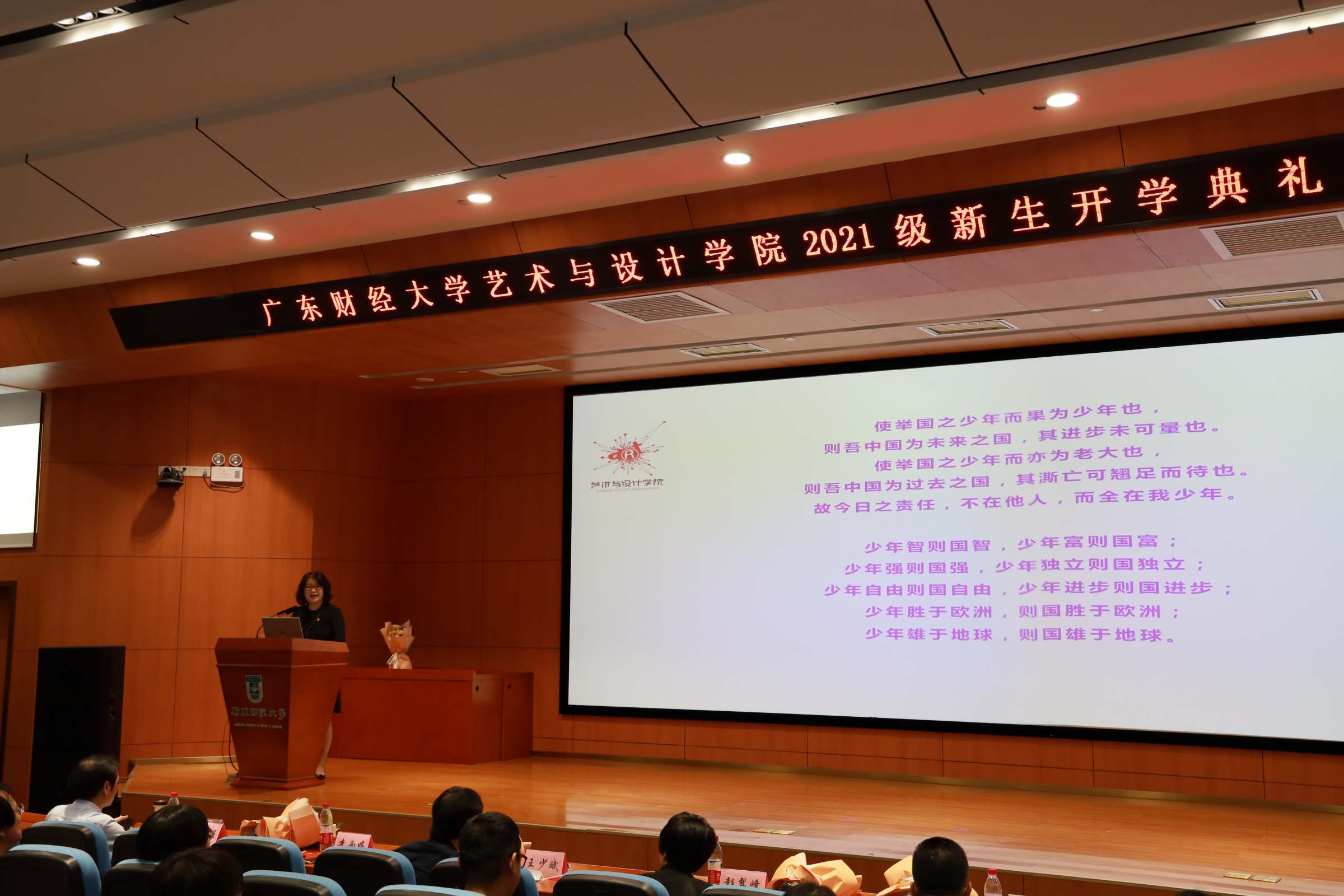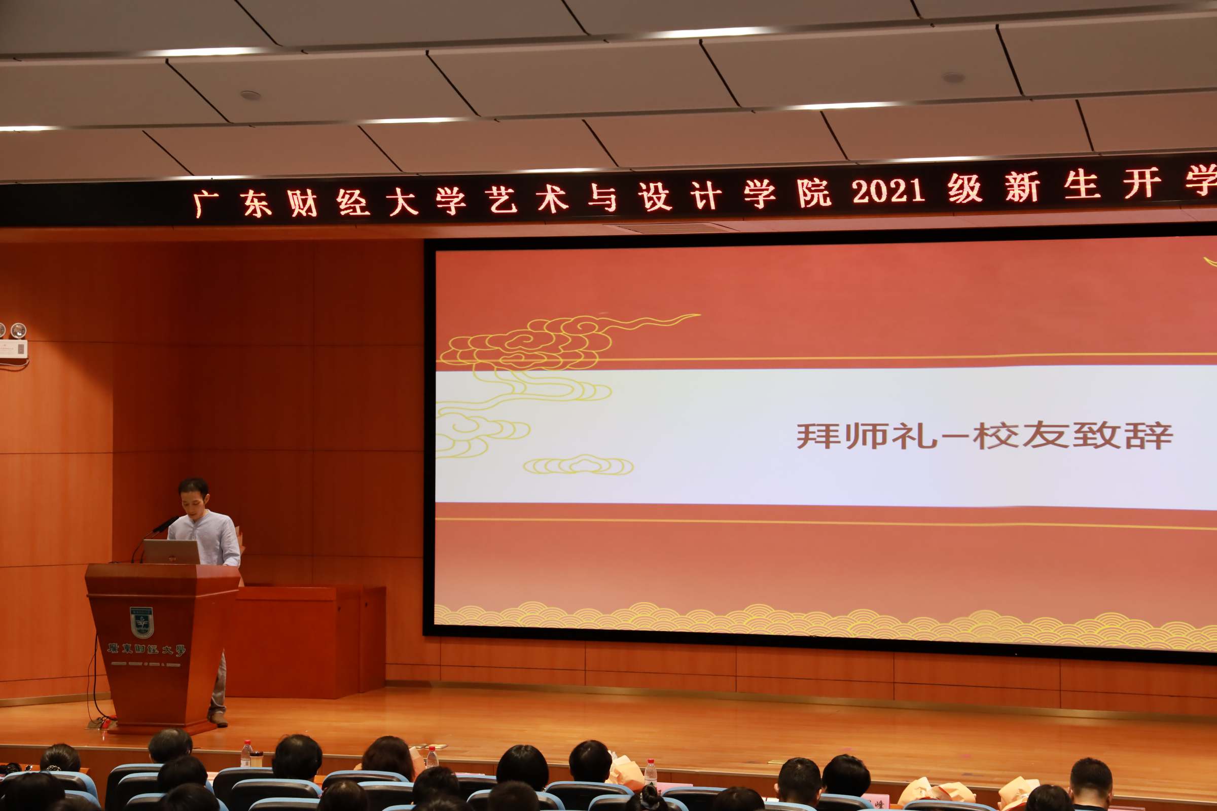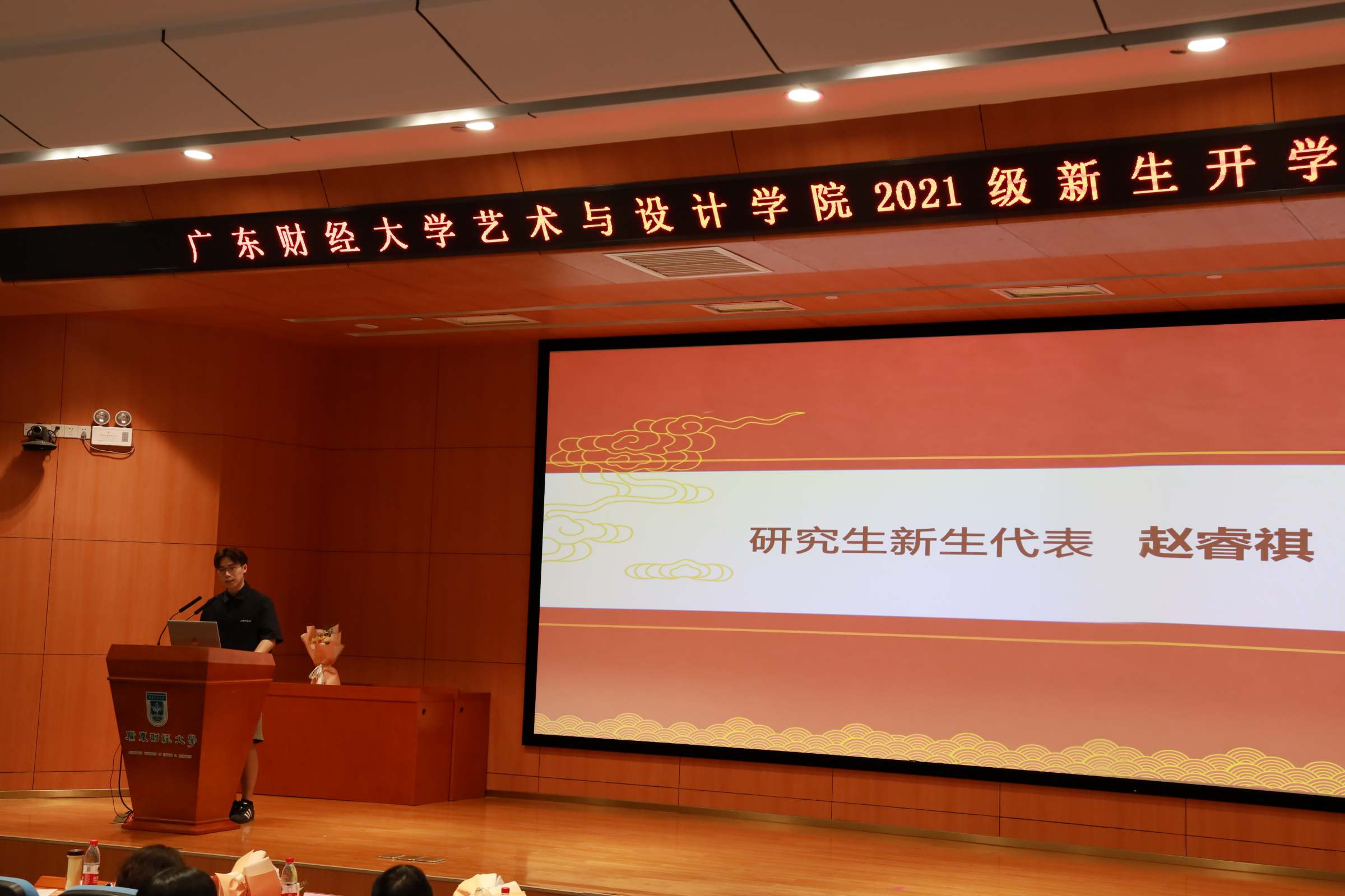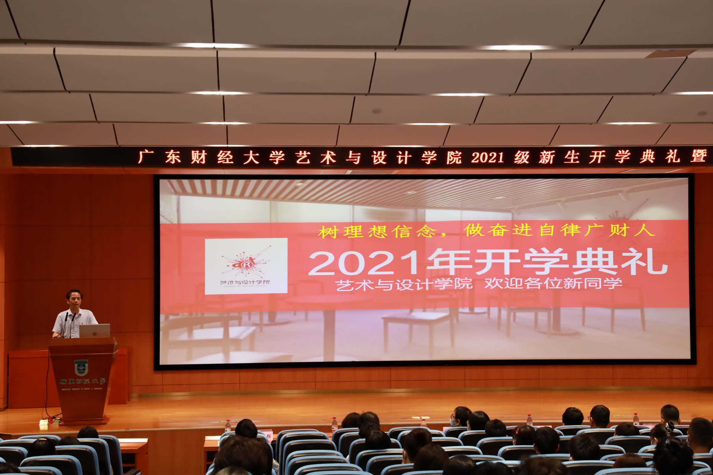 9月8日下午,艺术与设计学院在广州校区正心堂举行“树理想信念,做奋进自律广财人”为主题的开学典礼,并开讲思政第一课。艺术与设计学院2021级本科生和研究生新生代表、校友代表、学院党政班子、硕士导师团队和班主任团队200余人参加开学典礼。学院党委副书记林强主持开学典礼。
