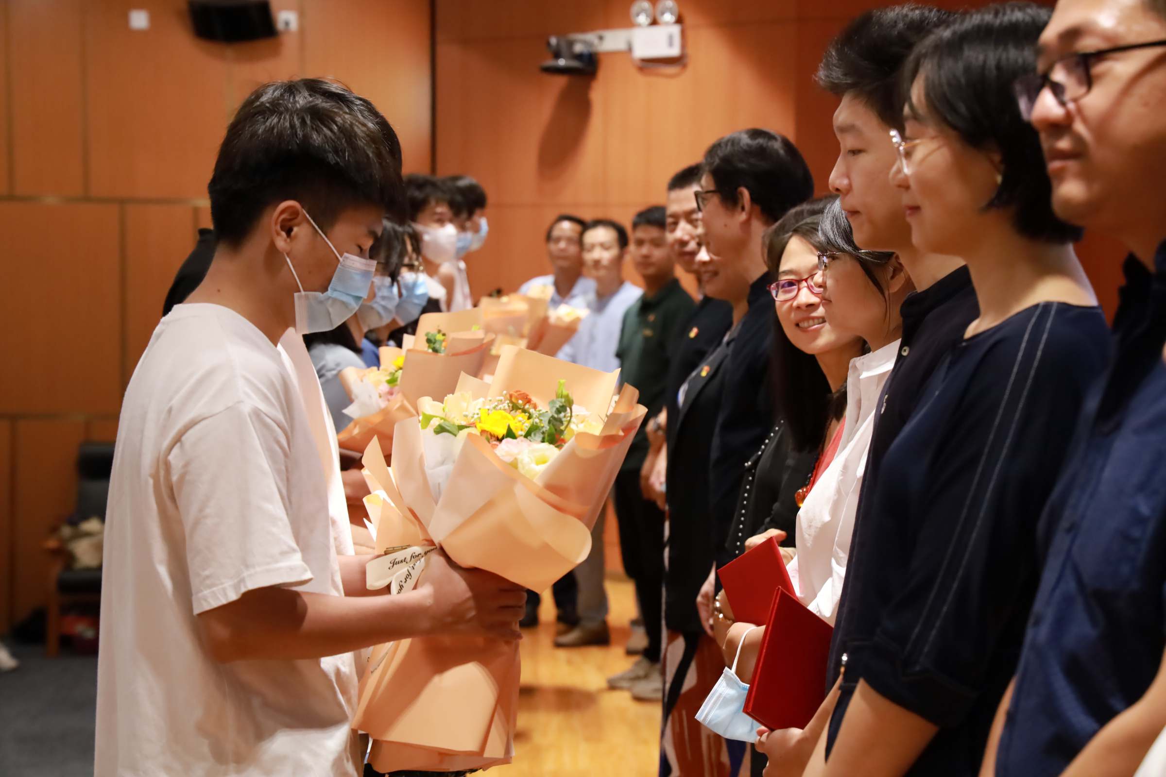 随后,由学院党委书记彭翠峰、副院长宋琦为12名本科新生班主任颁发聘书,塑身正垂范之像,推动三全育人向纵深发展。由学院校友会会长黄卓勋主持简朴而庄重的新生拜师仪式,带领全体学弟学妹以传统作揖礼向班主任和硕士导师们表达尊崇与恭敬,传承和树立尊师重道、奋进自律的学风院风。硕士导师代表、副院长李雨婷为全体新生进行学术思想开悟,领全场师生一起朗诵经典名篇《少年中国说》,引导青年学子要坚定理想信念,志存高远,踏实研学,勇做时代的弄潮儿。研究生、本科生新生代表与在校生学生干部代表分别发言,谈体会,扬志气。
