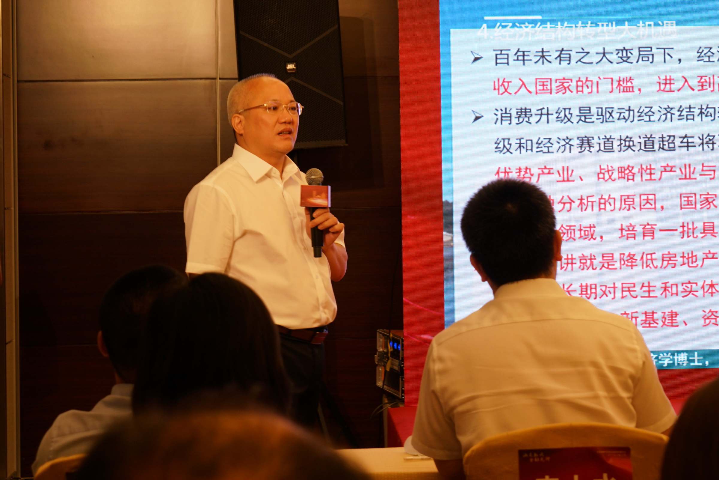 黎友焕作题为《汕尾金融跨越式创新发展路在何方》的主旨发言,梳理了当前国内外金融形势,指出了汕尾金融发展的短板,提出了汕尾金融发展的新思路。