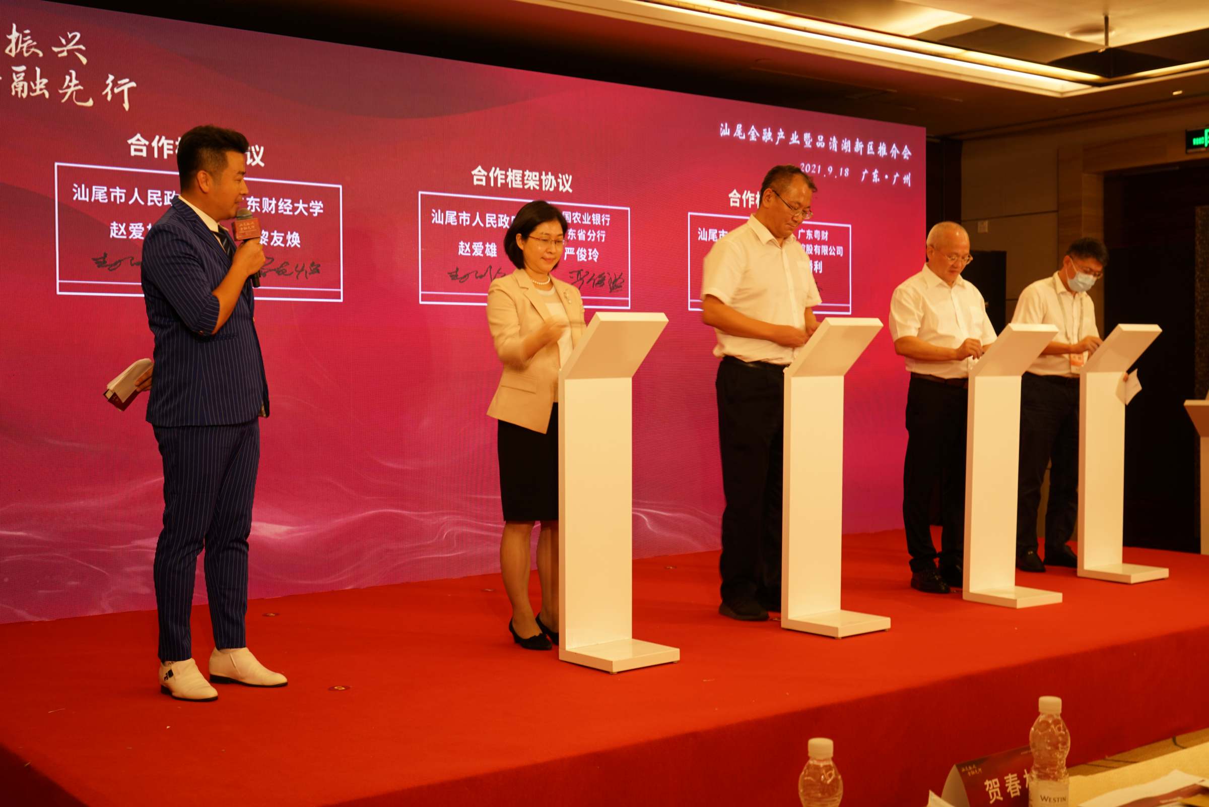 9月18日,汕尾市政府举办的“汕尾振兴·金融先行”汕尾金融产业暨品清湖新区推介会在广交会展中心举行。我校副校长邹新月,社会合作处处长黎友焕出席活动并与汕尾市签订了广东财经大学——汕尾市政府合作框架协议。