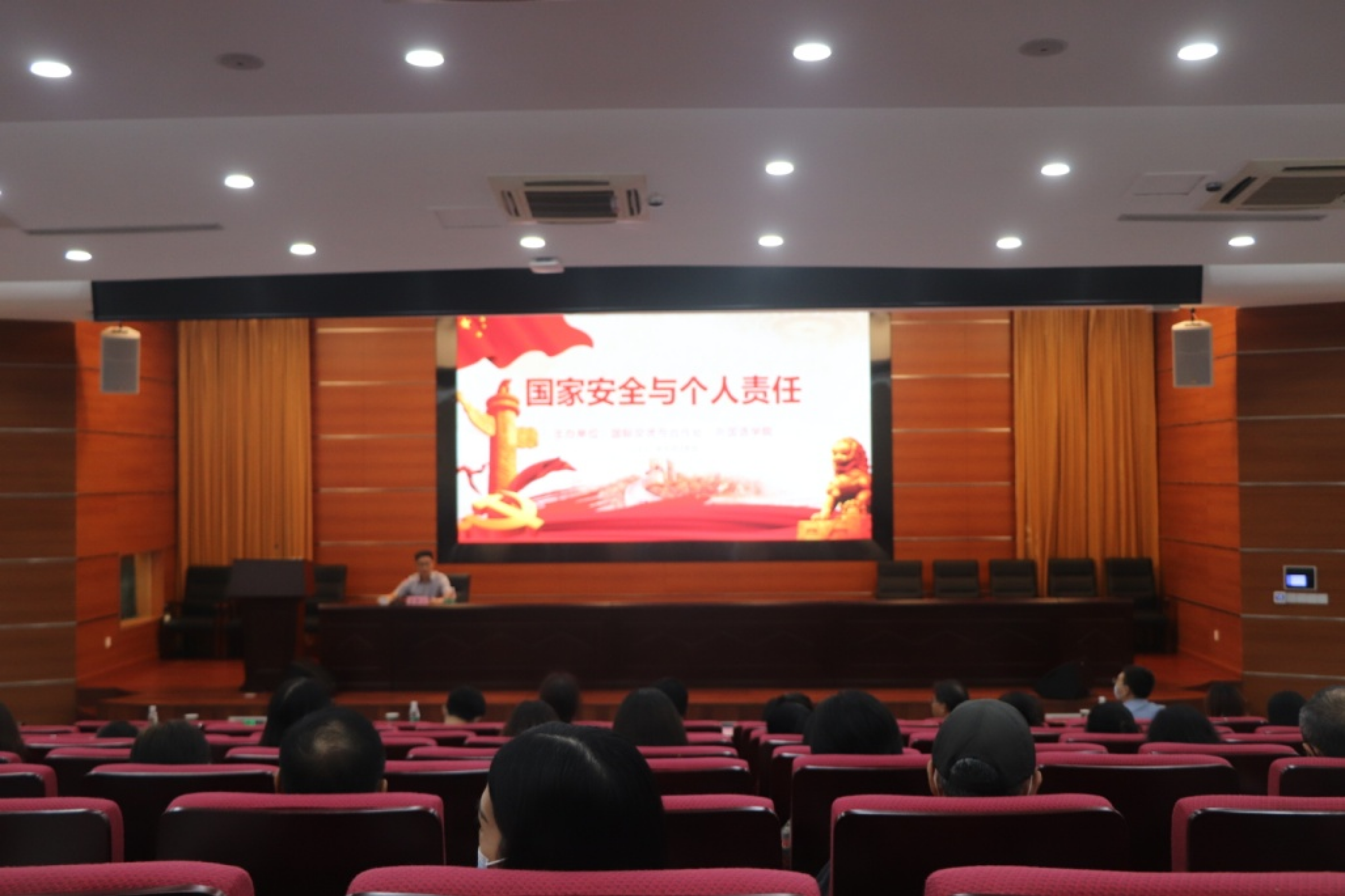 为增强教职工维护国家安全的责任感和使命感,9月28日下午,外国语学院、国际交流与合作处在综合楼408学术报告厅联合举办“国家安全与个人责任”专题讲座,邀请省有关部门专家授课。外国语学院、国际交流与合作处、国际学院等单位负责人和全体教师聆听讲座,外国语学院党委书记谭玉祥主持讲座。