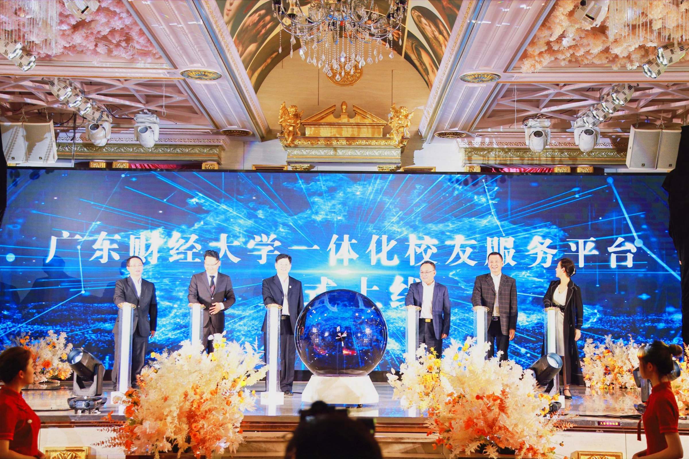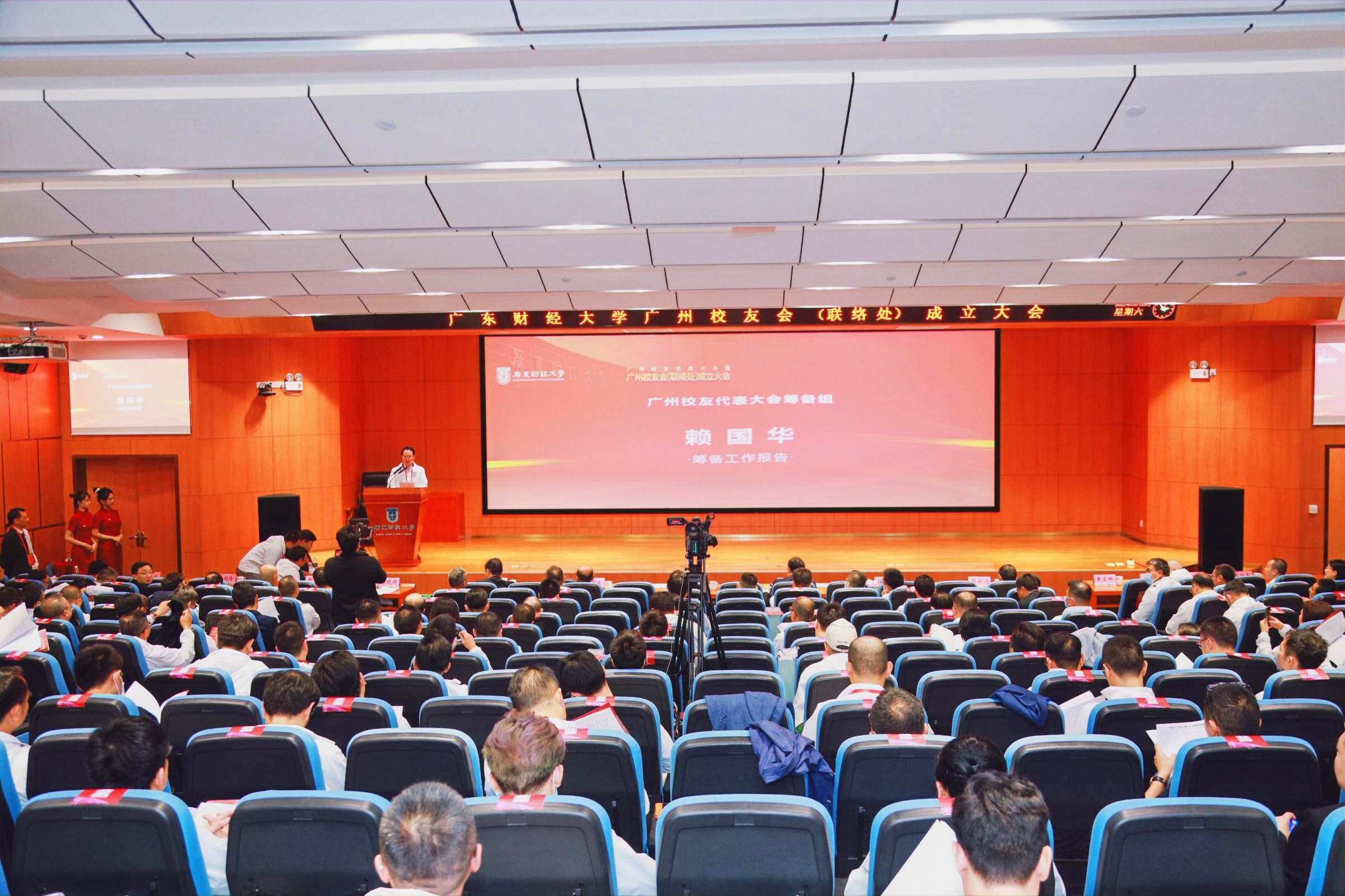 当天晚上,广州校友会(联络处)成立庆典晚宴举行。晚宴中,由广州校友会捐赠的广东财经大学校友服务大厅正式上线。黄晓波为9个校友之家颁发牌匾。各俱乐部的共建学院党委书记为俱乐部授牌。 广东电视台体育频道主持人、财税专业2001级校友陈凯冬,广东广播电视台嘉佳卡通卫视当家主持“章鱼哥哥”、播音与主持专业2009级校友王梓兆先后为大家送上歌曲《月半小夜曲》和《我爱你中国》。播音与主持专业2014级校友王爽带来了她创始的海豚语言艺术团的节目——一群可爱的小朋友朗诵并演唱《中国话》。最后,全场嘉宾和校友共同唱响《歌唱祖国》,大家挥舞着手中的小国旗,将晚会推向高潮。