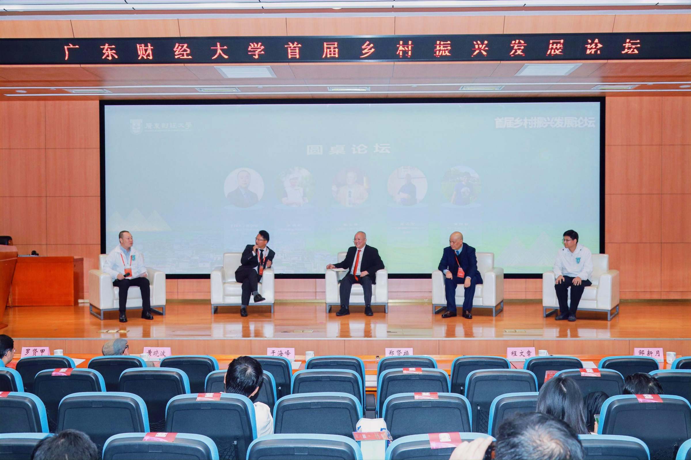 随后,广东财经大学首届乡村振兴发展论坛拉开帷幕。广东省农业农村厅二级巡视员程文章、广东省税务局驻麻岗镇帮镇扶村乡村振兴工作队队长戴宏辉、肇庆市怀集县桥头镇党委书记陈剑锋、广东慧园粮油有限公司董事长张志军、阳江市农业农村局副科长李博业等出席论坛。