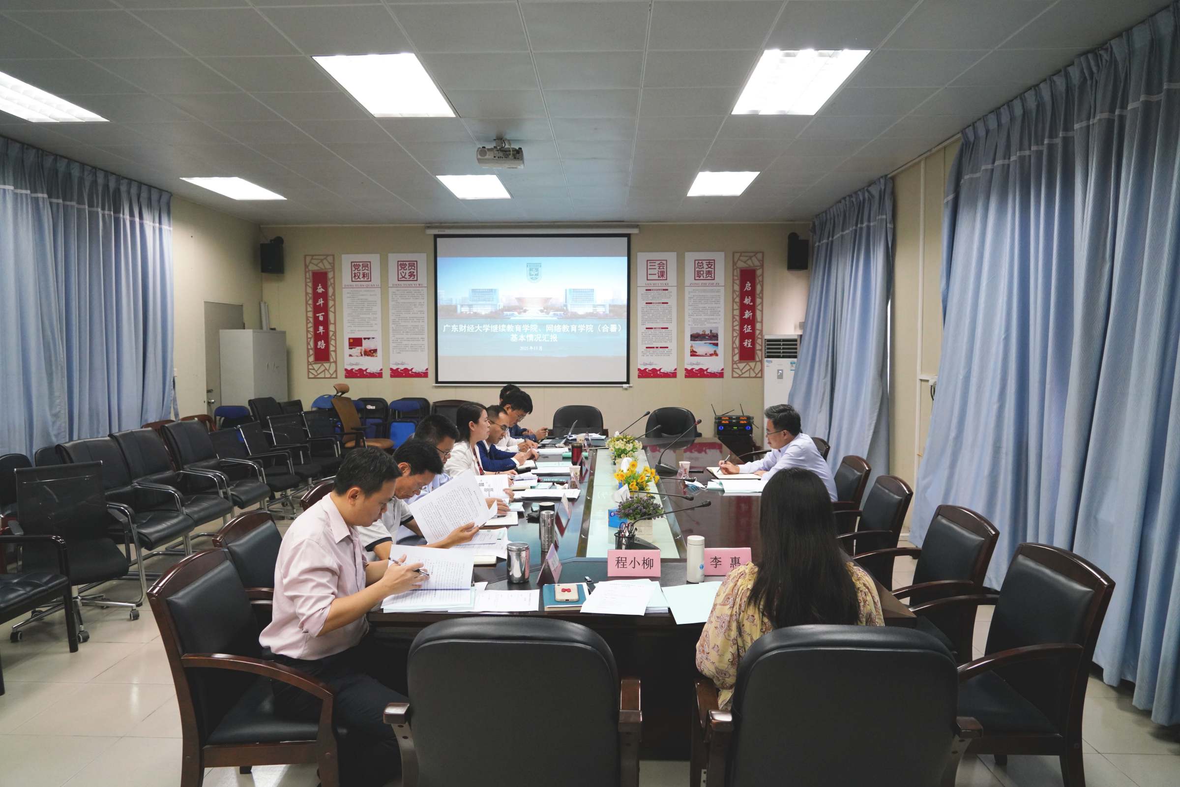 吕瑛汇报了学院继续教育工作的基本情况、存在的问题、面临的机遇和挑战,以及下一步的工作计划,龚义荣汇报了学院党建和学生管理工作,李志勇汇报了学院信息化建设和网络教育工作,教务部主任李德军汇报了学院教学管理和教学运行工作。