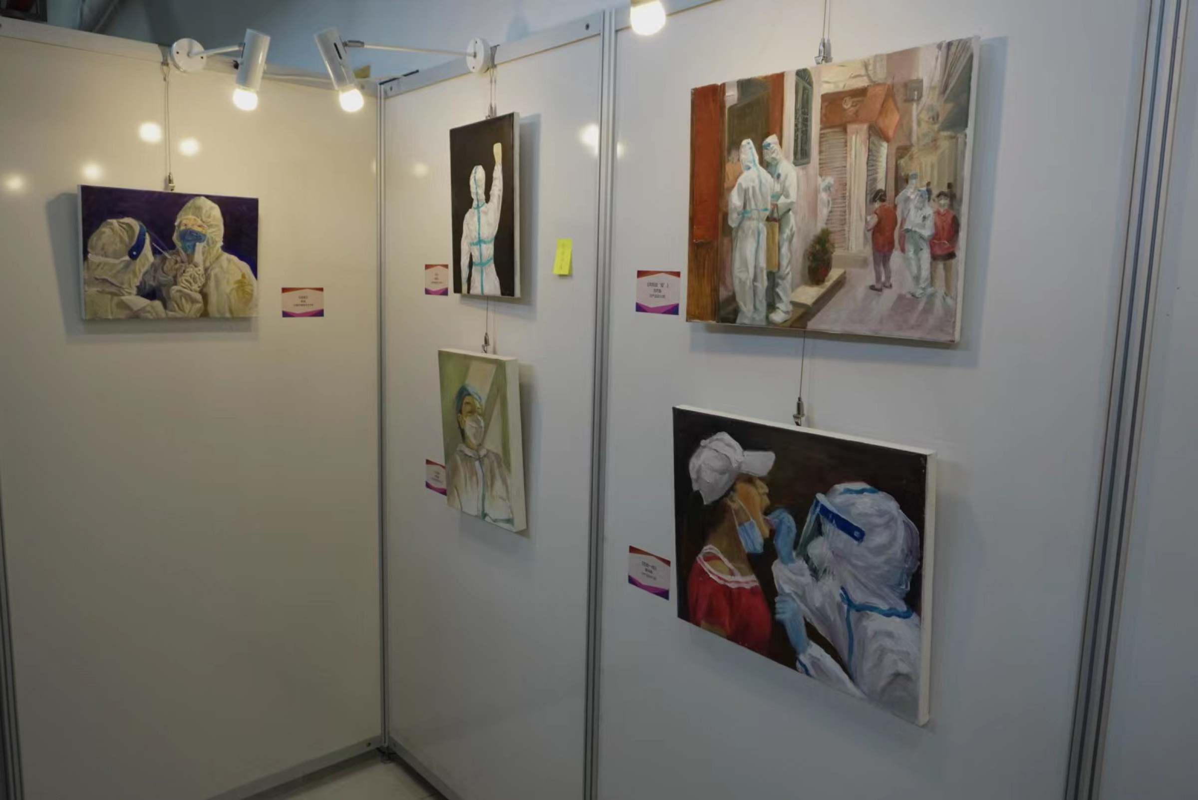 画展分三个单元:抗疫英雄、校园霞光、物道花语。“抗疫英雄”主题系列作品为抗疫无名英雄造像,讴歌新时代无数医务人员和志愿者们的奉献精神;在这种伟大“抗疫精神”庇护下,才有“校园霞光”系列的安祥美好,才有“物道花语”系列的内心观照。策展人通过三个单元系列作品的逻辑呈现,引导观众在作品审美的过程,感悟时代伟大抗击精神的主旋律,关注岁月静好的后面为同学们负重前行的无名英雄,思考“小我”之美与“无我”之大美的区别。